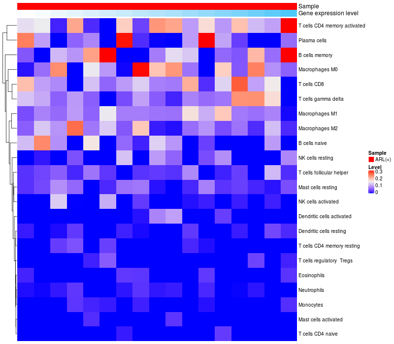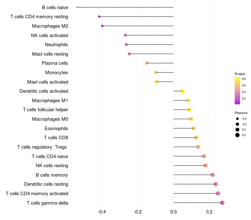 Relationship between gene expression and immune infiltrating cell level