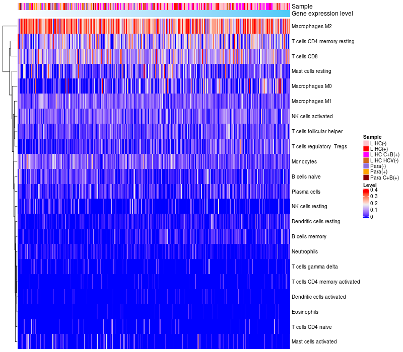 Relationship between gene expression and immune infiltrating cell level
