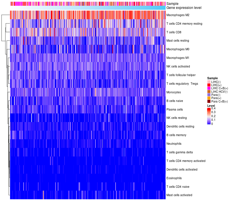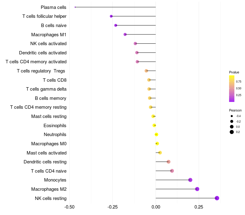 Relationship between gene expression and immune infiltrating cell level