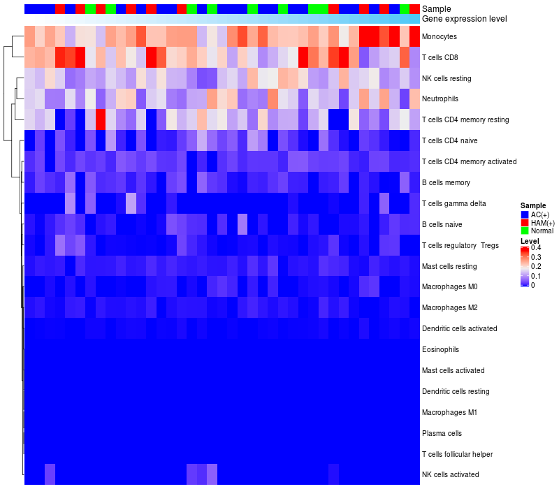 Relationship between gene expression and immune infiltrating cell level
