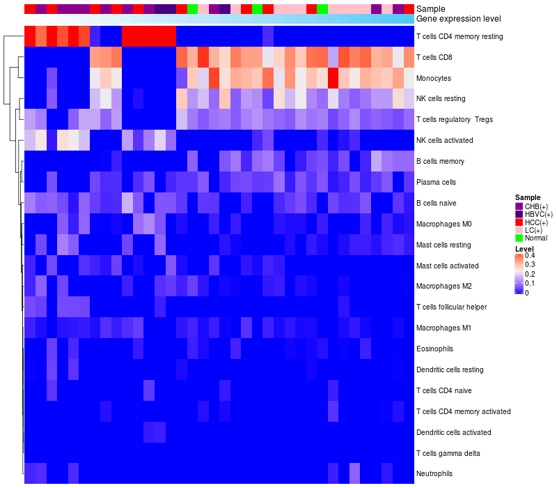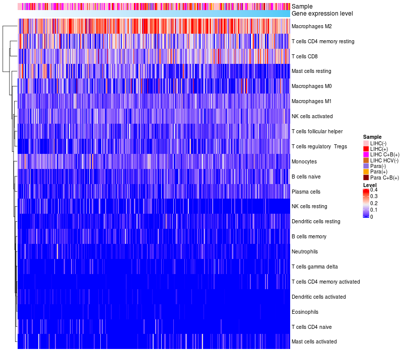 Relationship between gene expression and immune infiltrating cell level