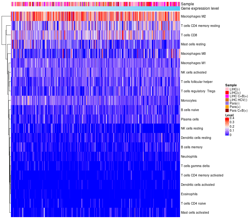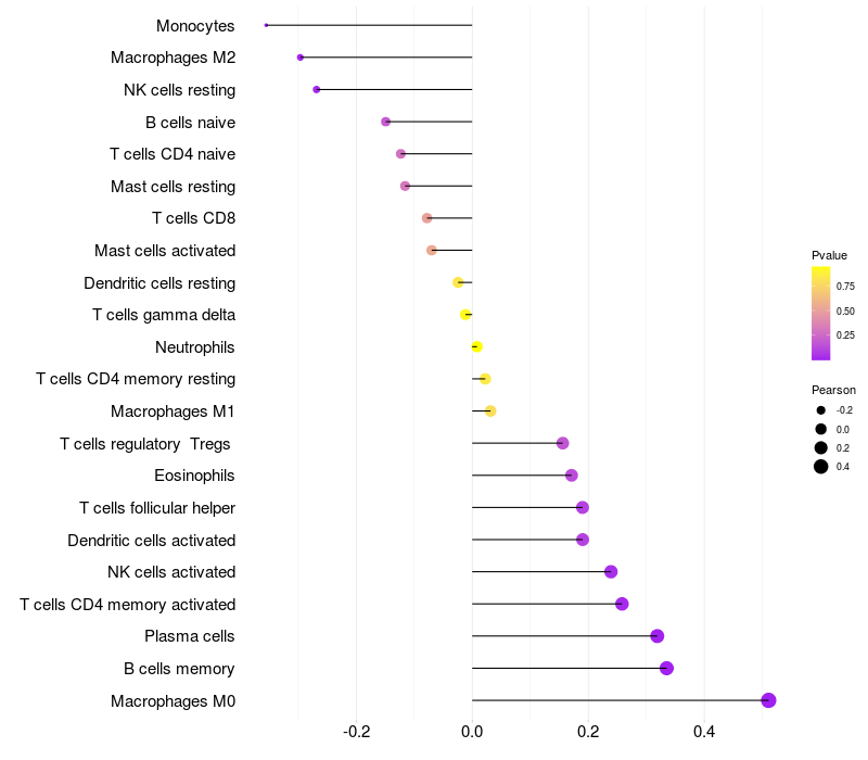 Relationship between gene expression and immune infiltrating cell level
