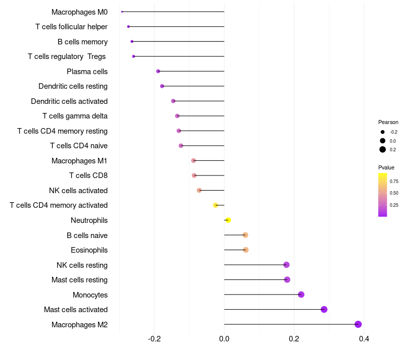 Lollipop of IDH2 expression and immune infiltrating cell level correlation result in HBV+ samples