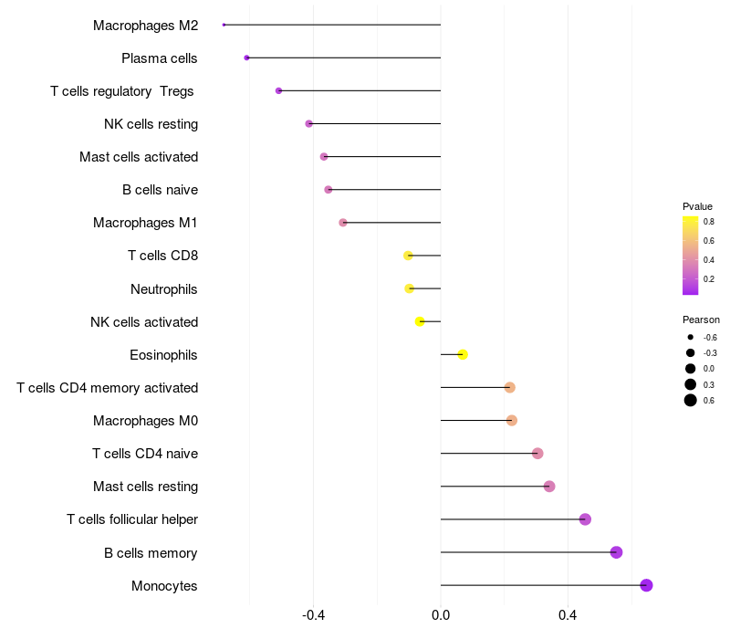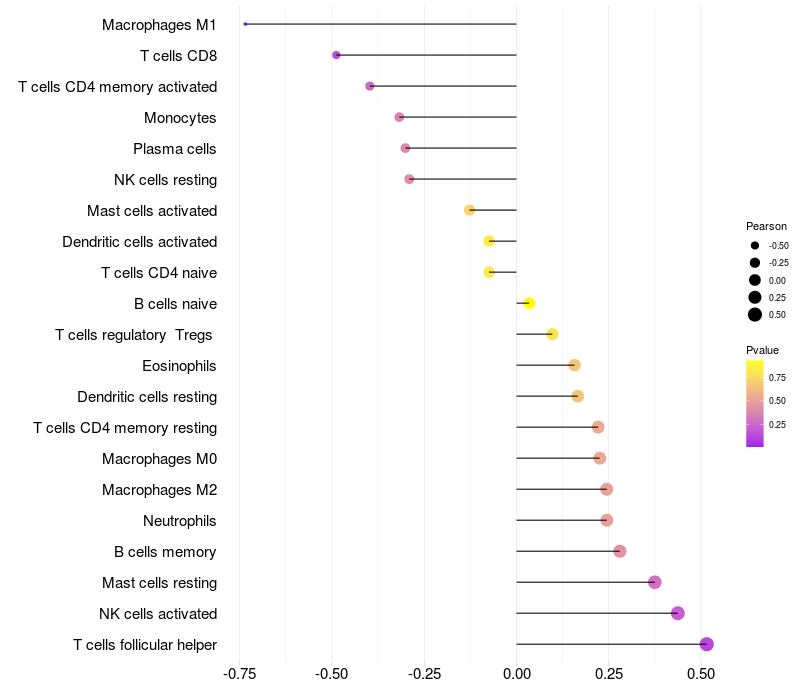 Lollipop of IDH3A expression and immune infiltrating cell level correlation result in HBV+ Liver cirrhosis samples