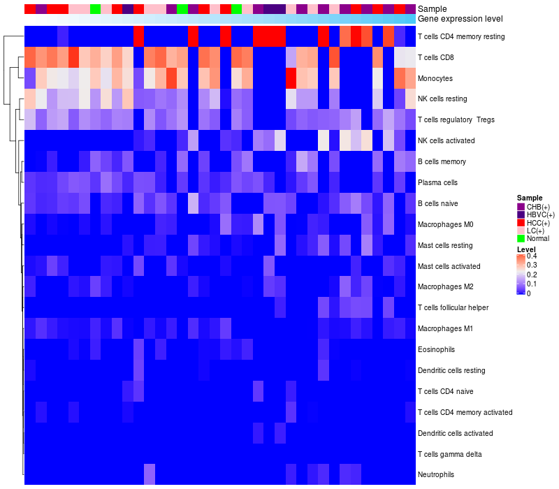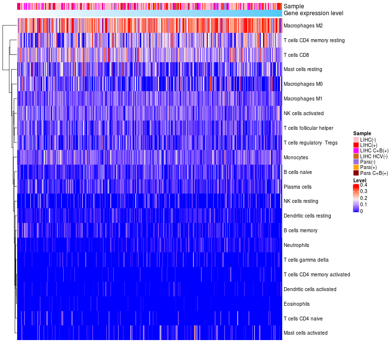 Liver hepatocellular carcinoma HCV (HBV+)(86), Liver hepatocellular carcinoma HCV (HBV-)(19), Liver hepatocellular carcinoma (HBV+)(209), Liver hepatocellular carcinoma (HBV+)(60), Paracancerous HCV (HBV+)(4), Paracancerous (HBV-)(28), Paracancerous (HBV+)(18) |