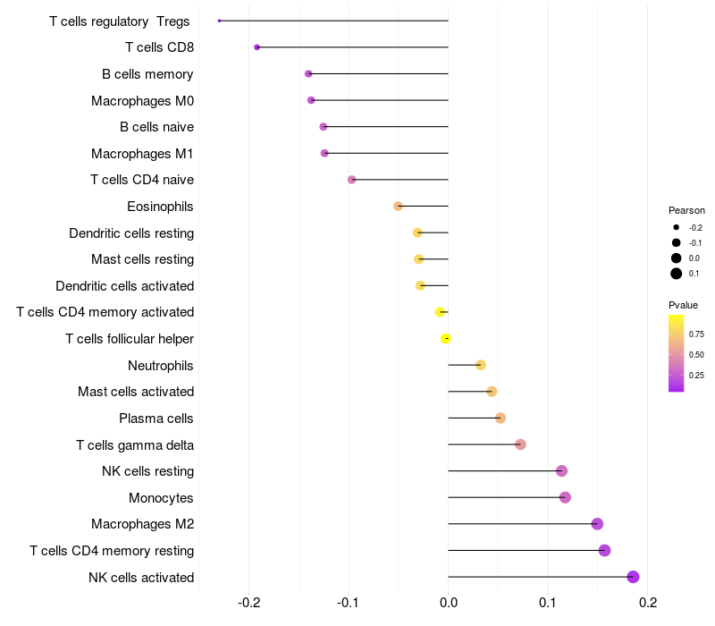 Lollipop of IDH3A expression and immune infiltrating cell level correlation result in HBV+ Chronic HBV (CHB) infection samples