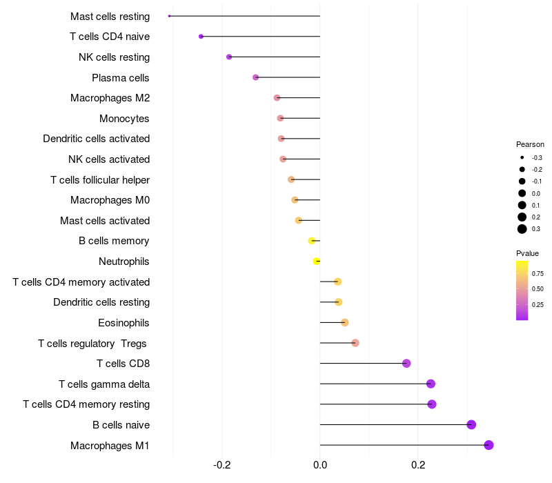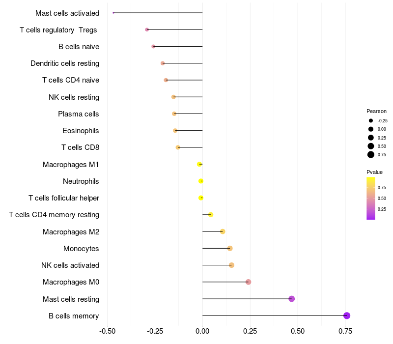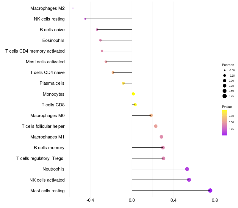 Lollipop of IFIH1 expression and immune infiltrating cell level correlation result in HBV+ Liver cirrhosis samples