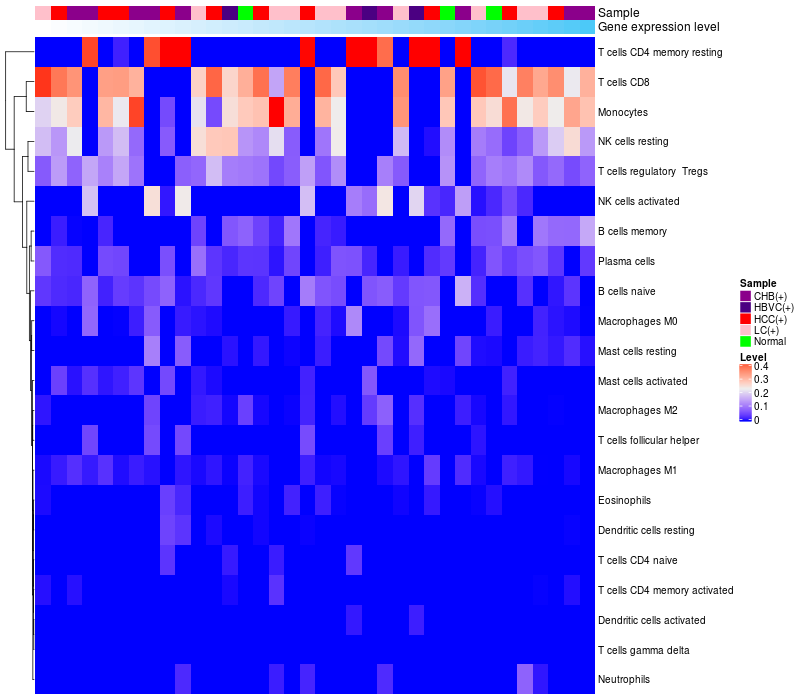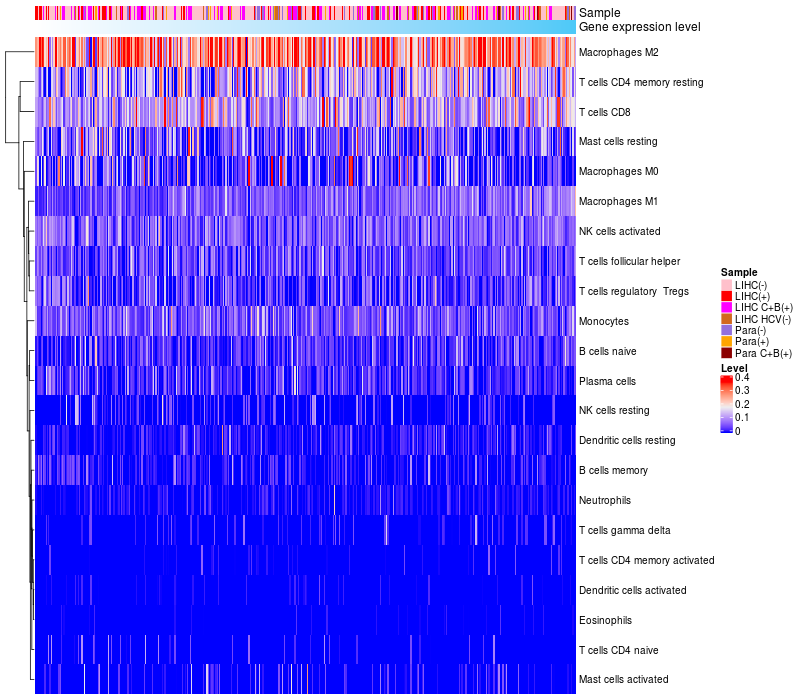 Liver hepatocellular carcinoma HCV (HBV+)(86), Liver hepatocellular carcinoma HCV (HBV-)(19), Liver hepatocellular carcinoma (HBV+)(209), Liver hepatocellular carcinoma (HBV+)(60), Paracancerous HCV (HBV+)(4), Paracancerous (HBV-)(28), Paracancerous (HBV+)(18) |