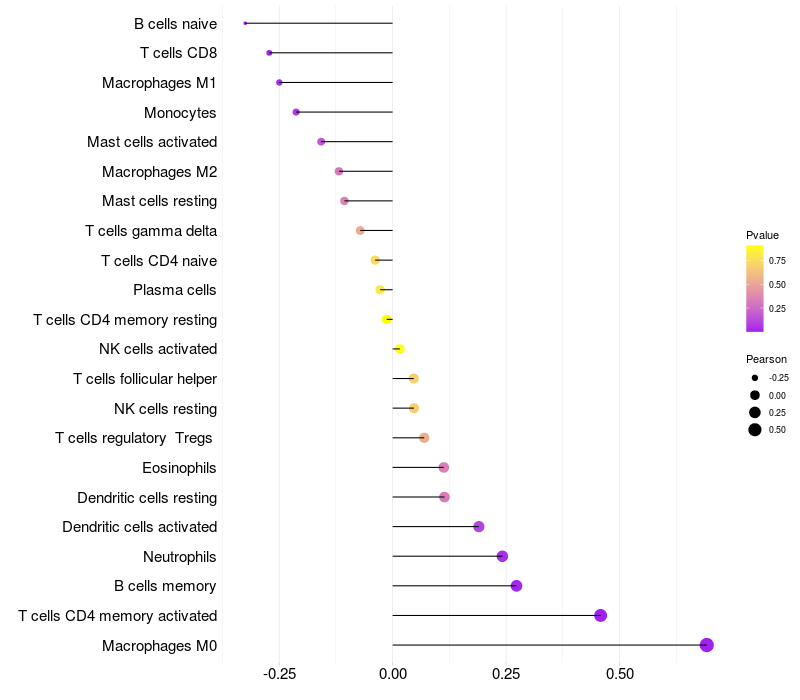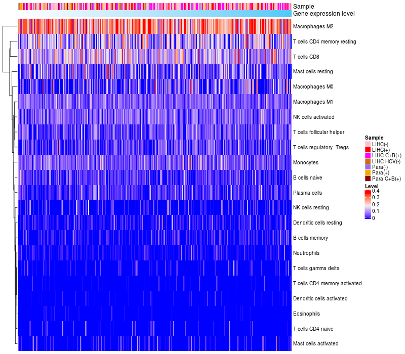 Relationship between gene expression and immune infiltrating cell level
