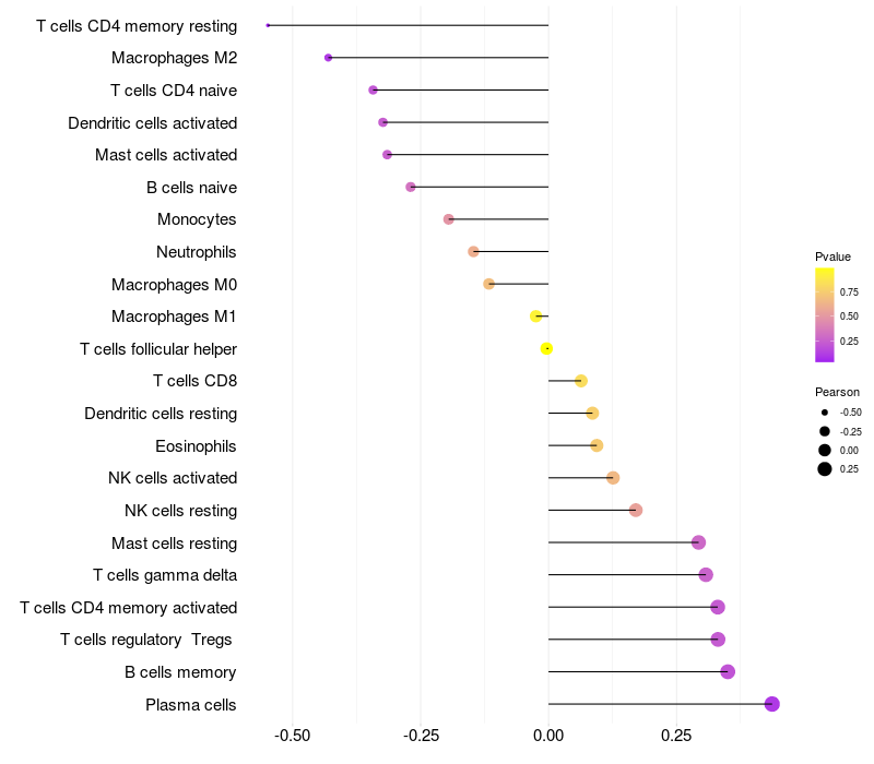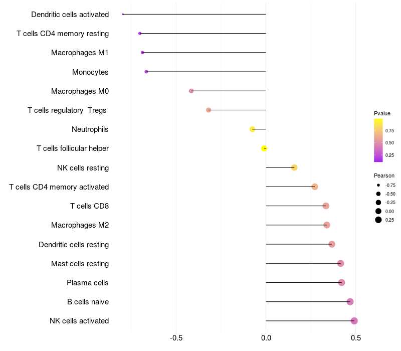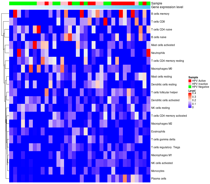 HeatMap of cell type fractions in all samples Lollipop of IFT27 expression and immune infiltrating cell level correlation result in HPV+ samples