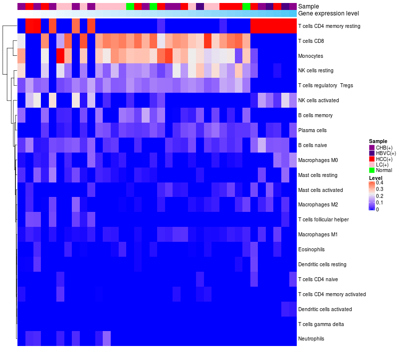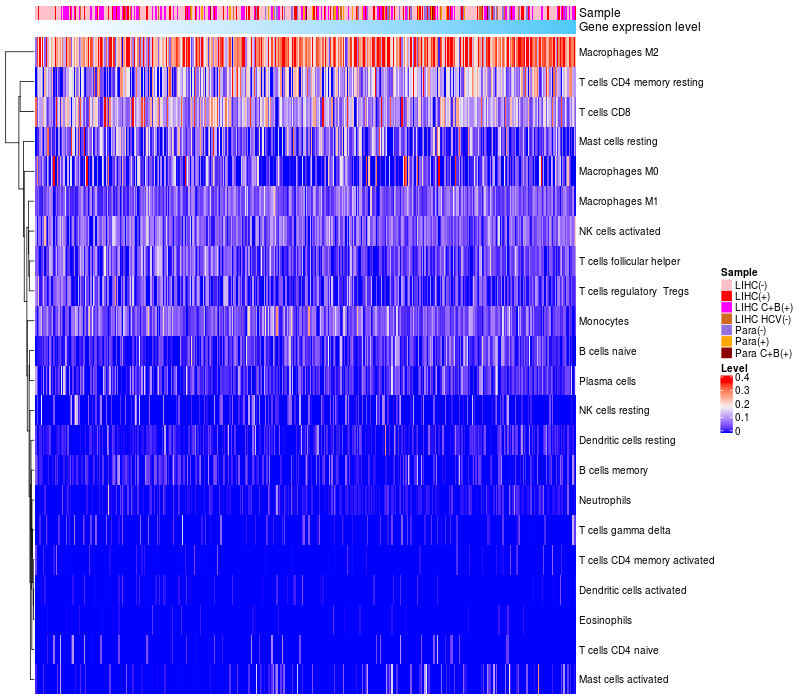 Liver hepatocellular carcinoma HCV (HBV+)(86), Liver hepatocellular carcinoma HCV (HBV-)(19), Liver hepatocellular carcinoma (HBV+)(209), Liver hepatocellular carcinoma (HBV+)(60), Paracancerous HCV (HBV+)(4), Paracancerous (HBV-)(28), Paracancerous (HBV+)(18) |
