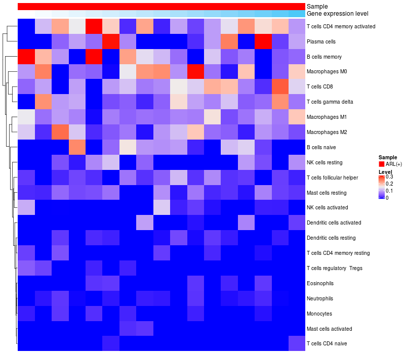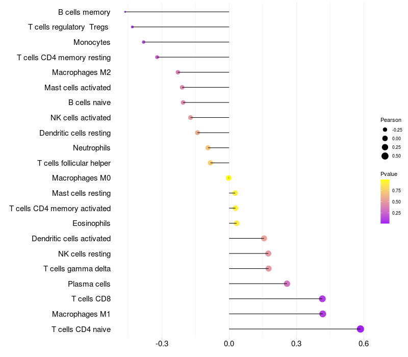 Relationship between gene expression and immune infiltrating cell level
