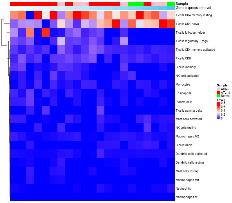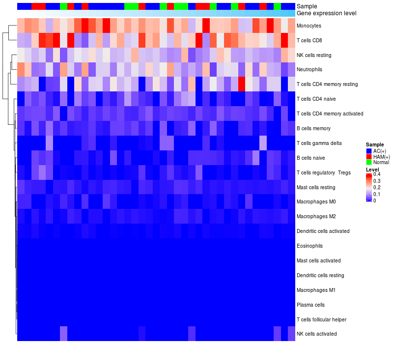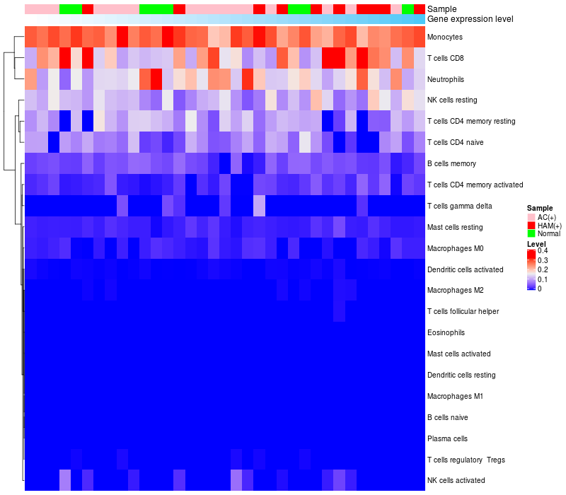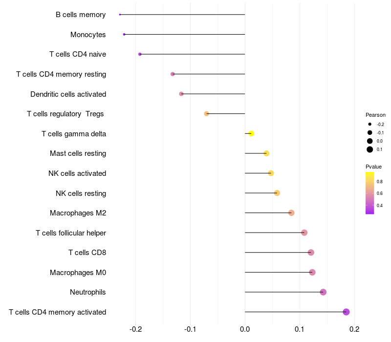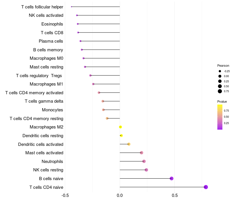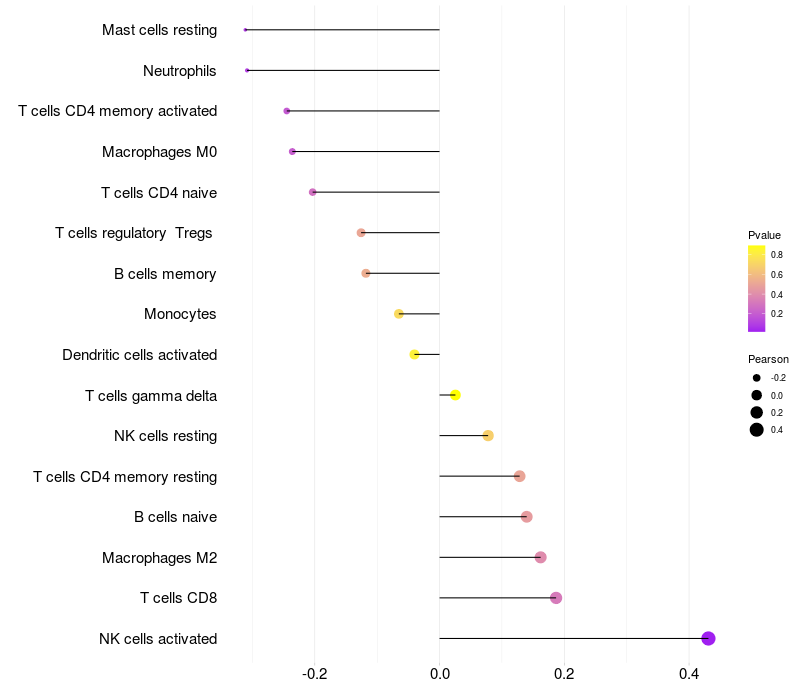 Lollipop of IGSF22 expression and immune infiltrating cell level correlation result in HTLV1+ samples