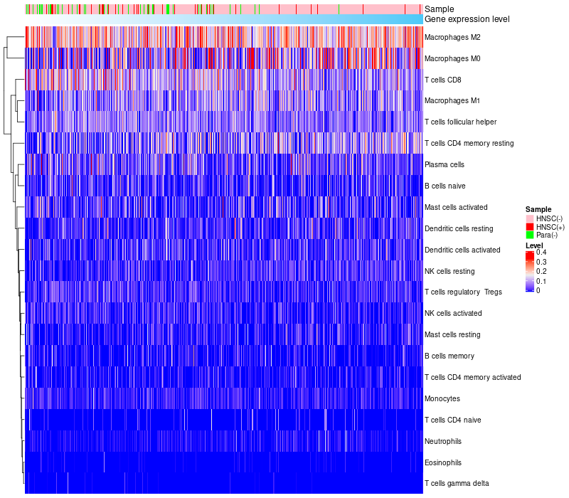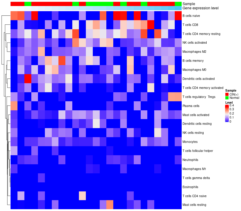 Relationship between gene expression and immune infiltrating cell level