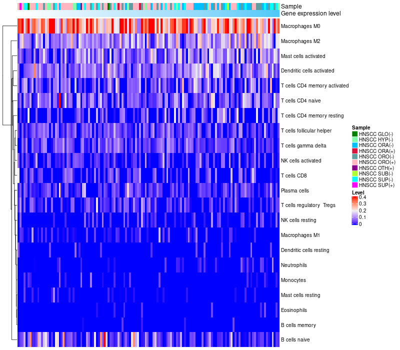 Head and Neck squamous cell carcinoma(HPV-)(483),Head and Neck squamous cell carcinoma(HPV+)(39),Paracancerous(HPV-)(44) |