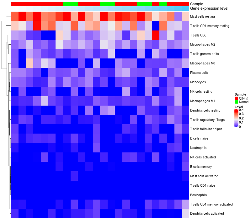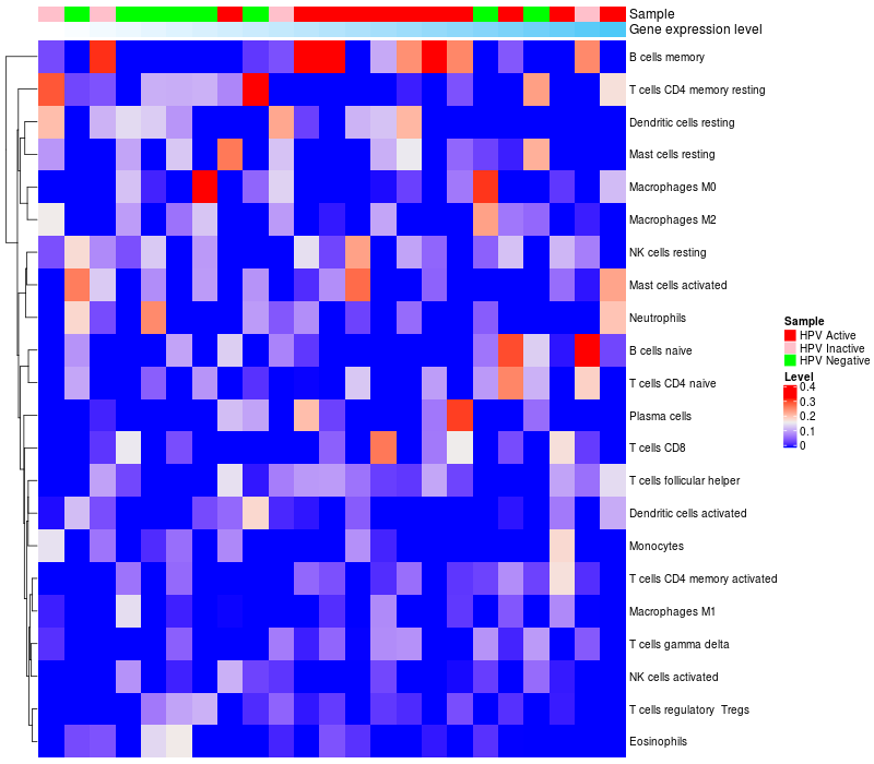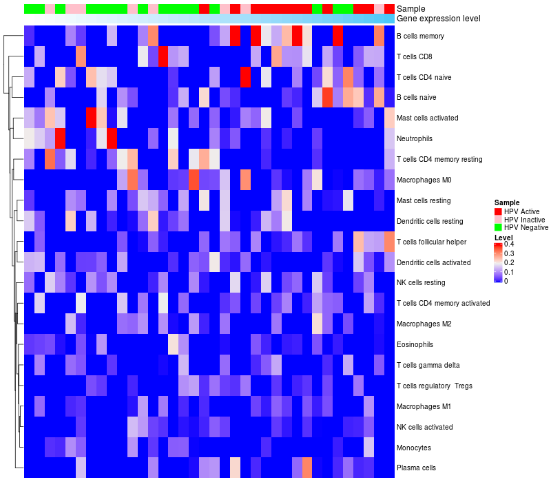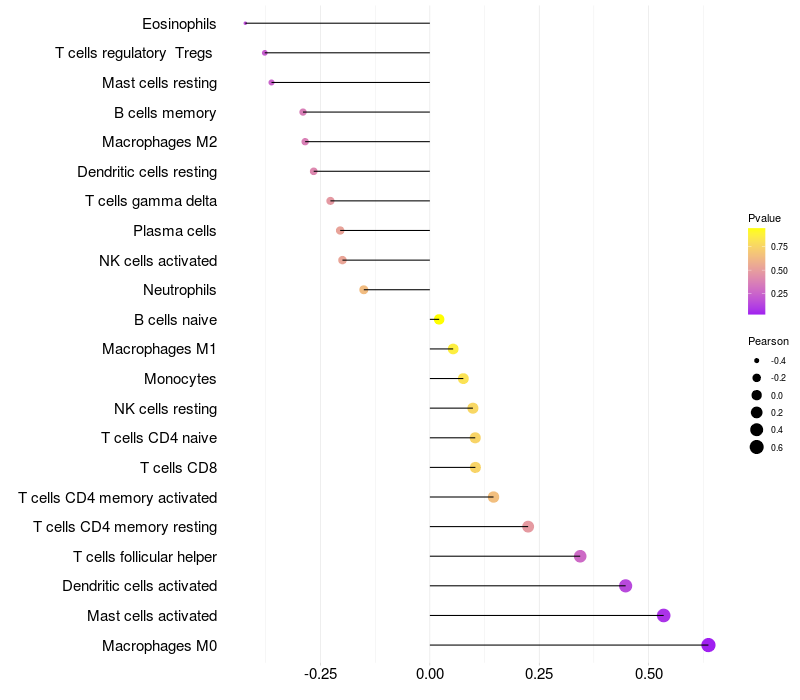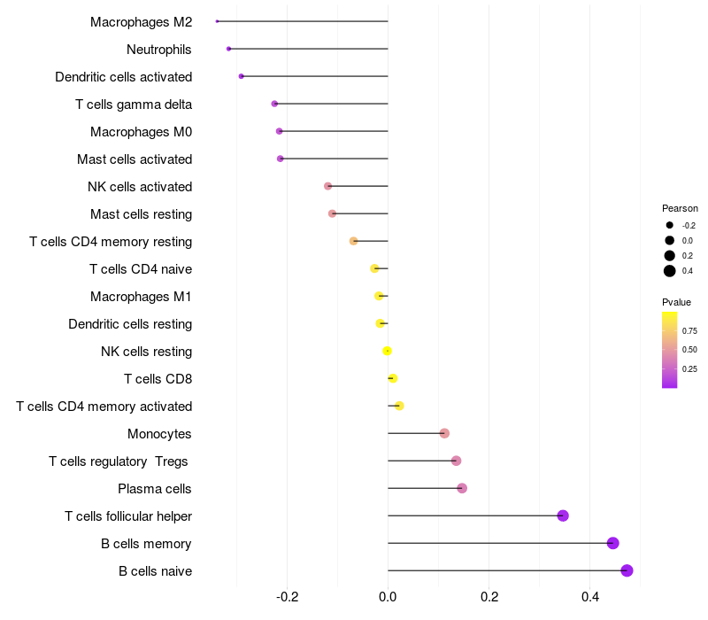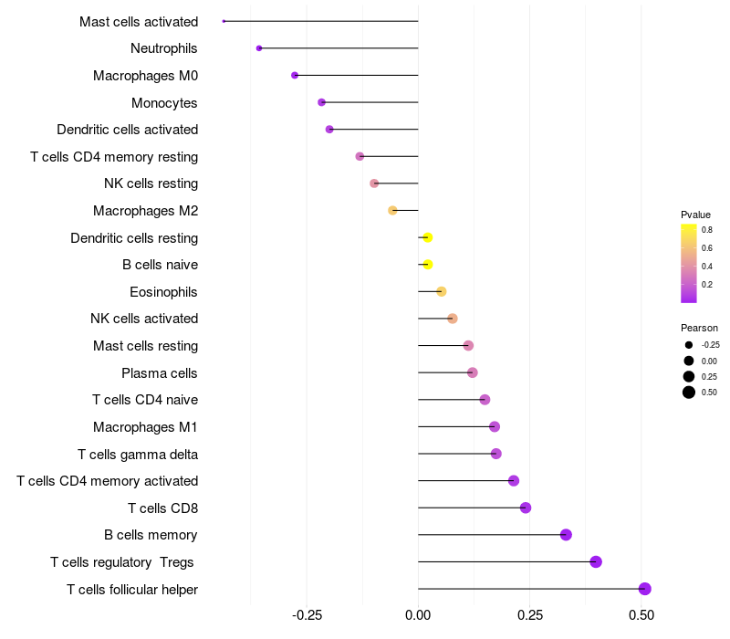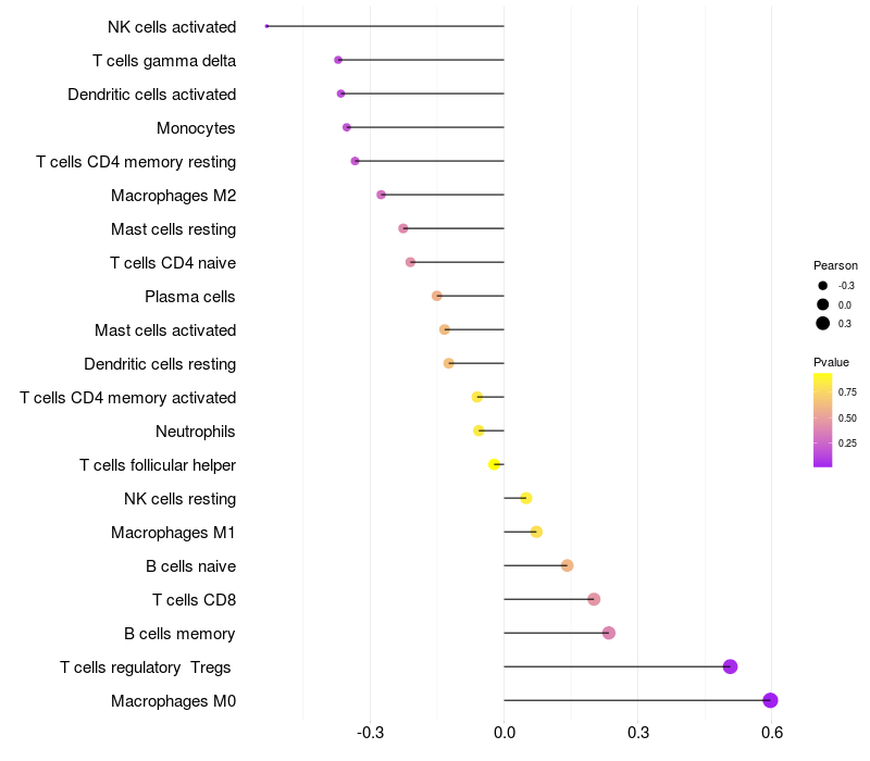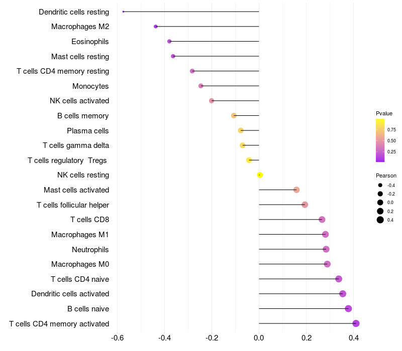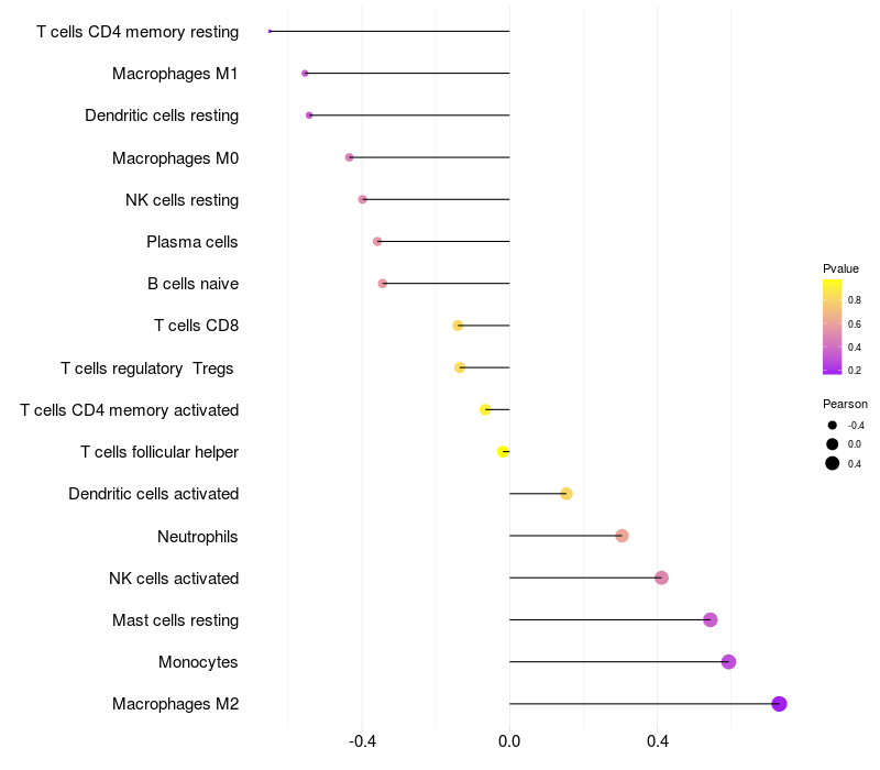 Lollipop of IKBKB expression and immune infiltrating cell level correlation result in HPV+ samples