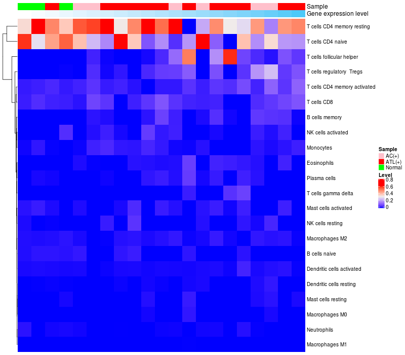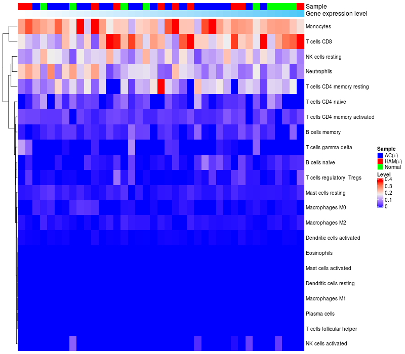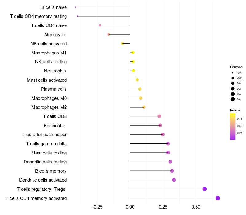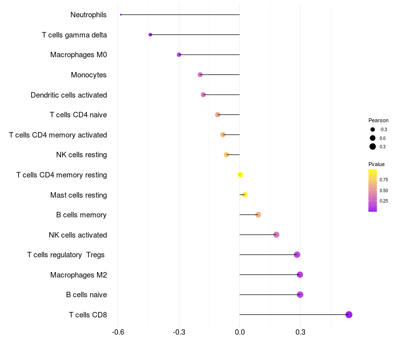 Relationship between gene expression and immune infiltrating cell level