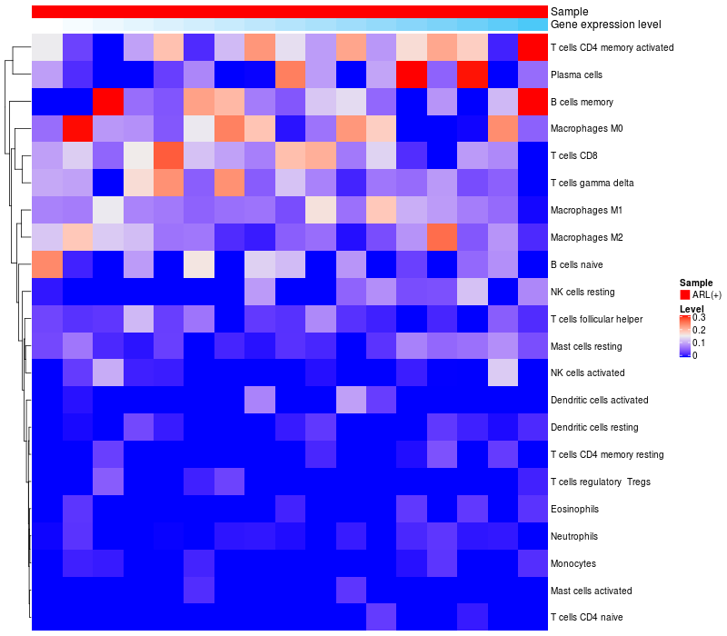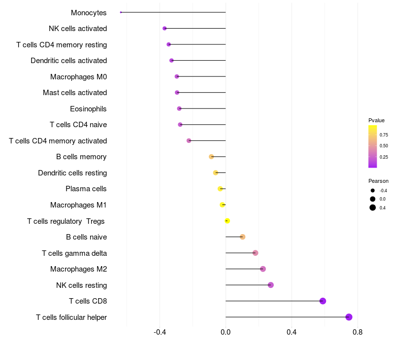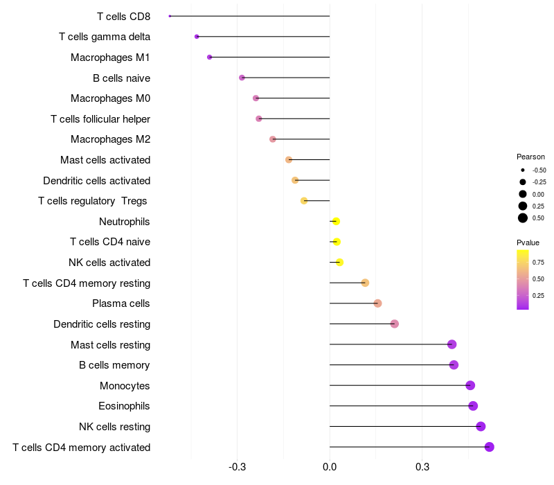 Relationship between gene expression and immune infiltrating cell level
