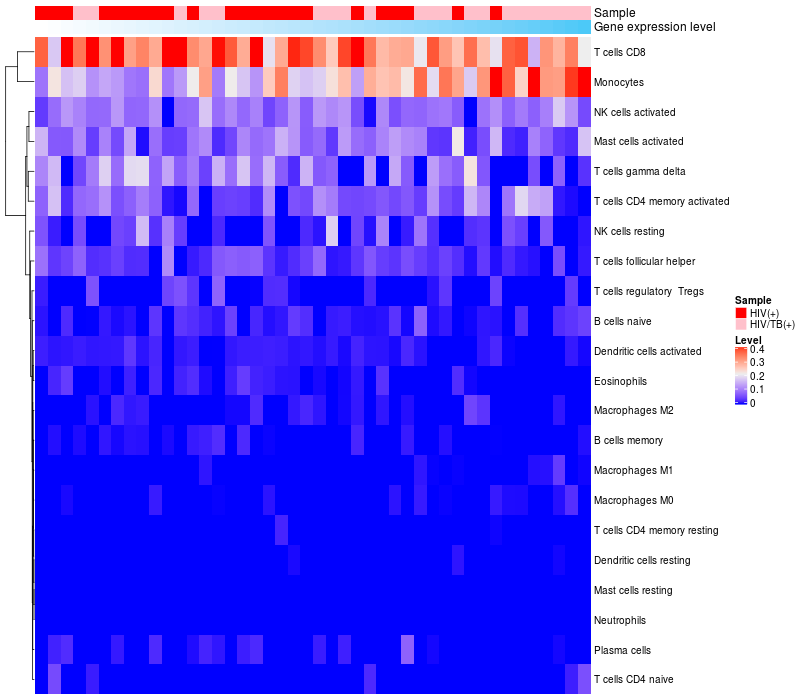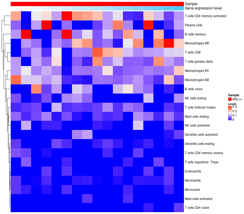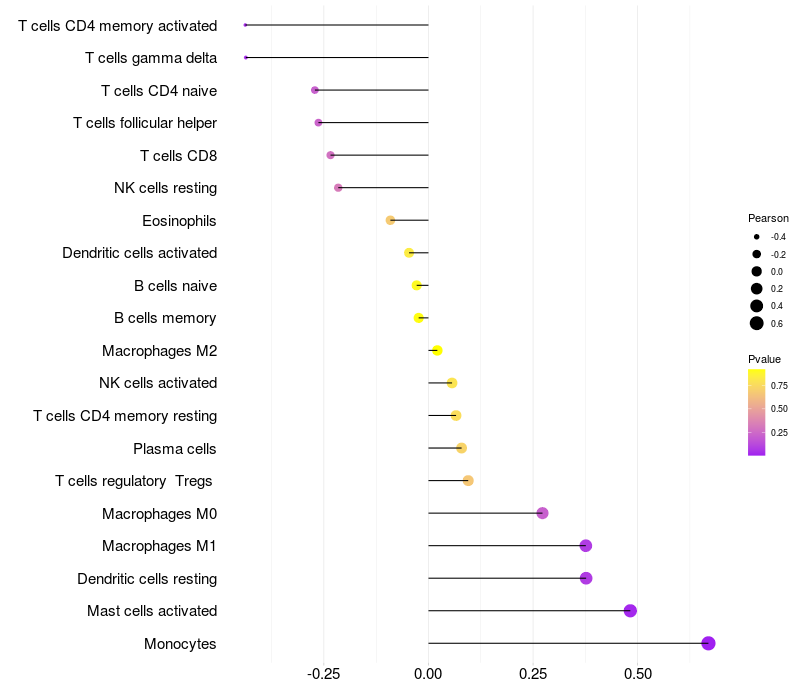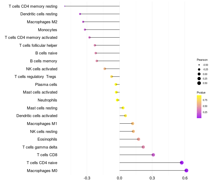Relationship between gene expression and immune infiltrating cell level