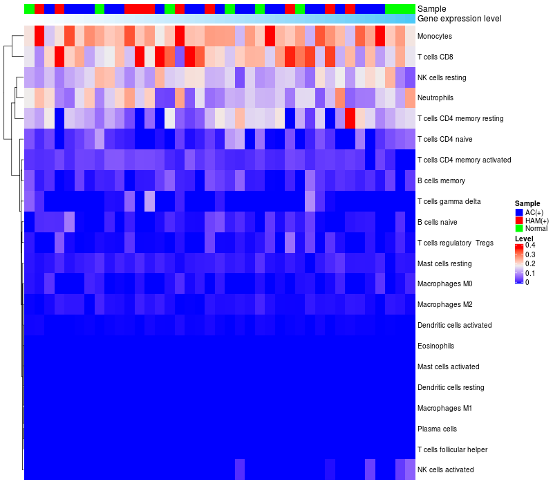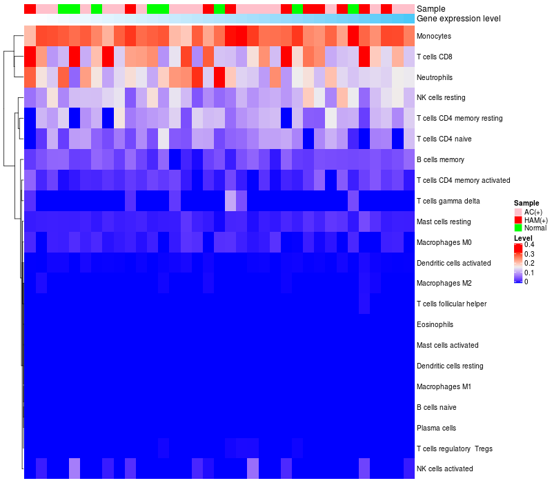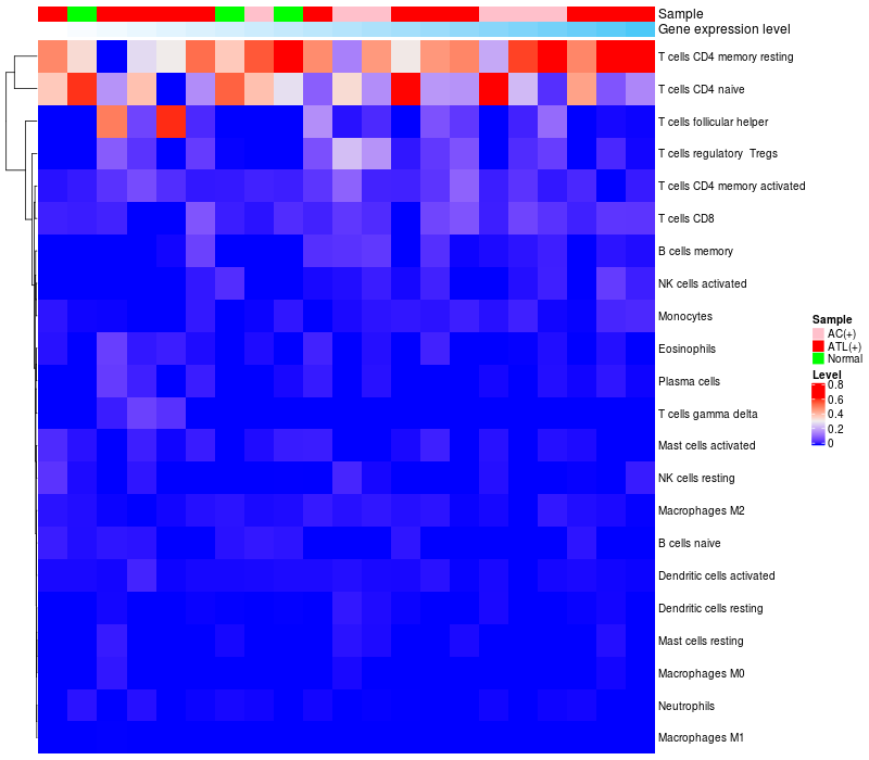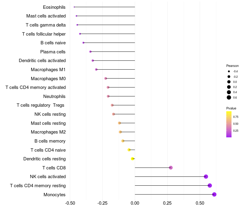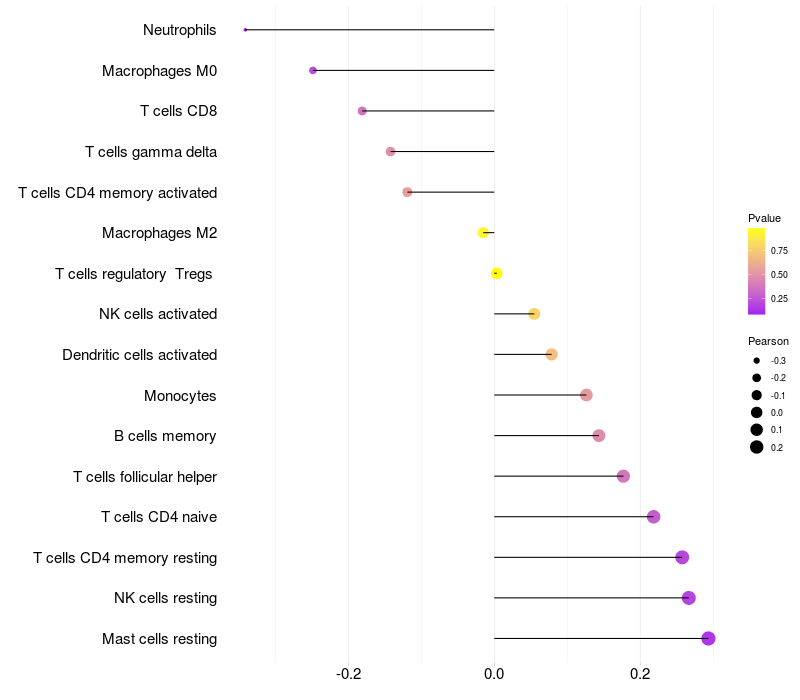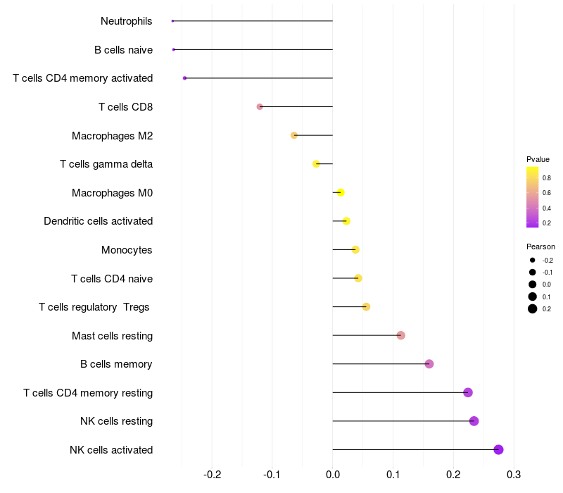 Lollipop of IL17RE expression and immune infiltrating cell level correlation result in HTLV1+ samples