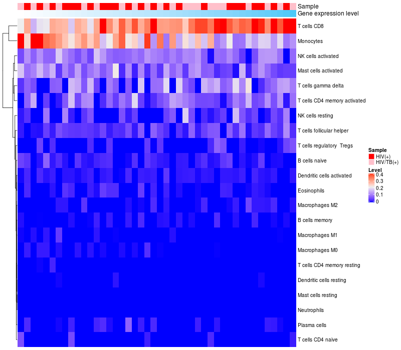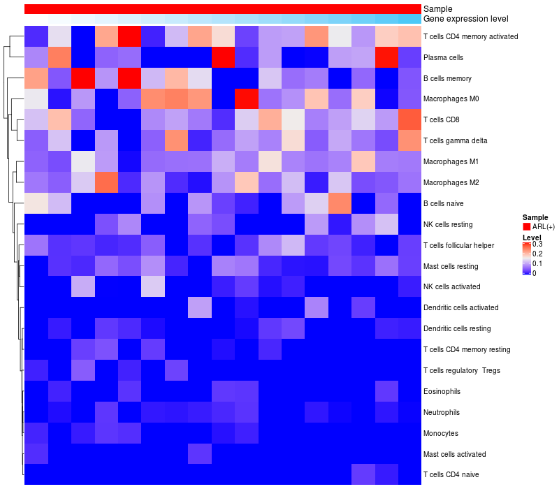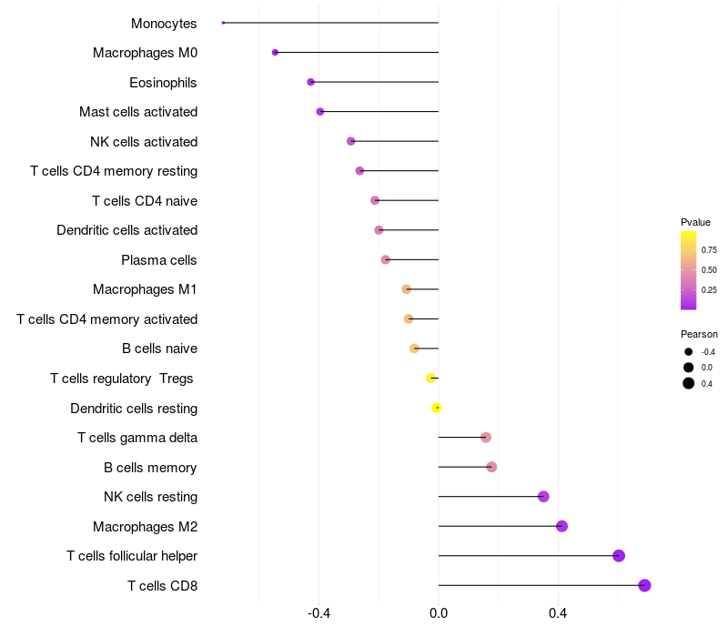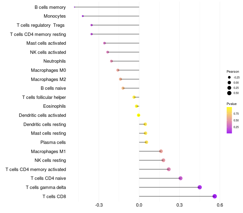 Relationship between gene expression and immune infiltrating cell level