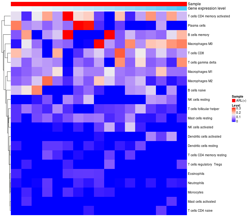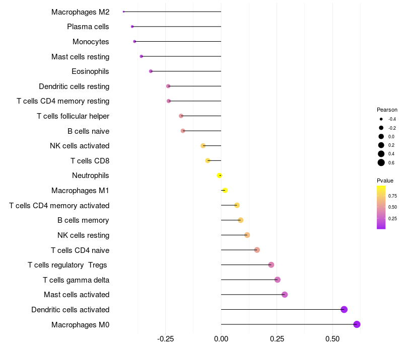 Relationship between gene expression and immune infiltrating cell level