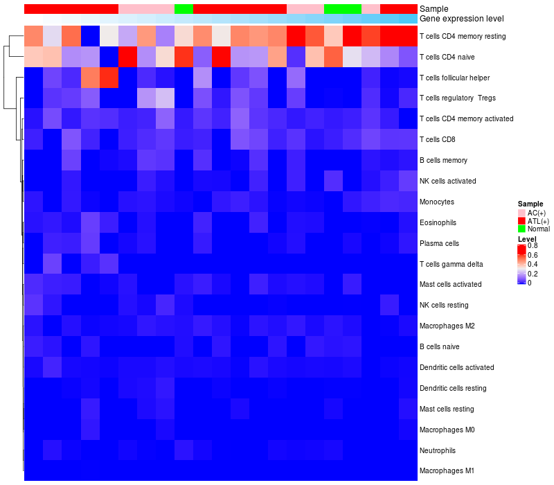 Normal (3), Asymptomatic carriers (HTLV1+)(6), Adult T-cell Leukemia-lymphoma (HTLV1+)(12) |