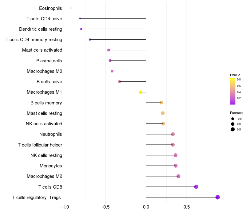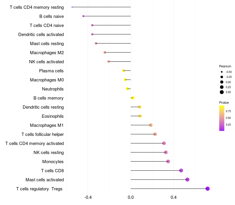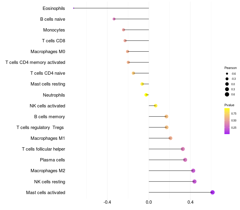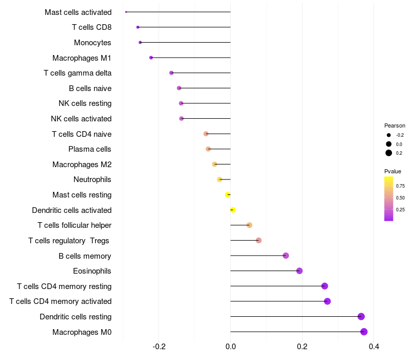 Lollipop of INCENP expression and immune infiltrating cell level correlation result in HBV+ Liver cirrhosis samples