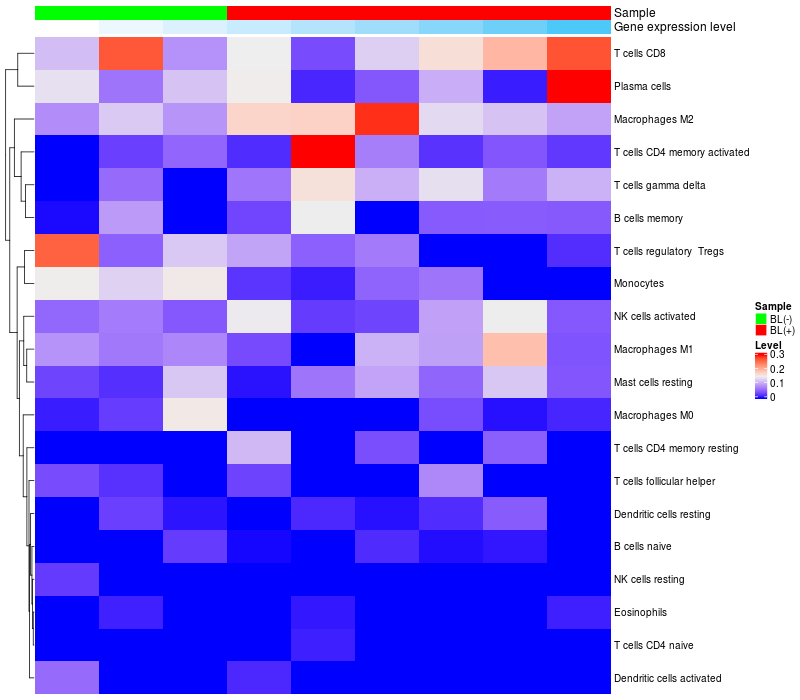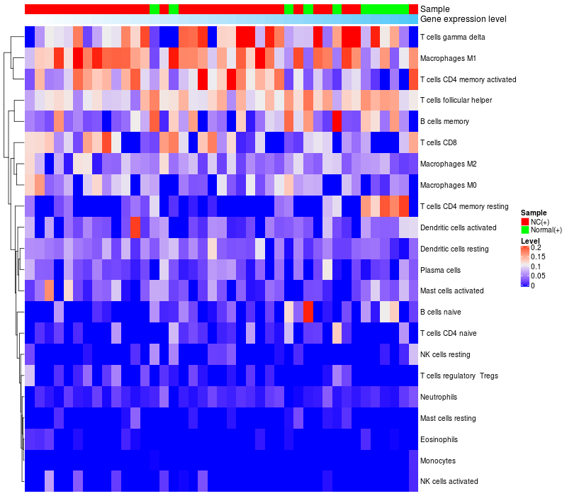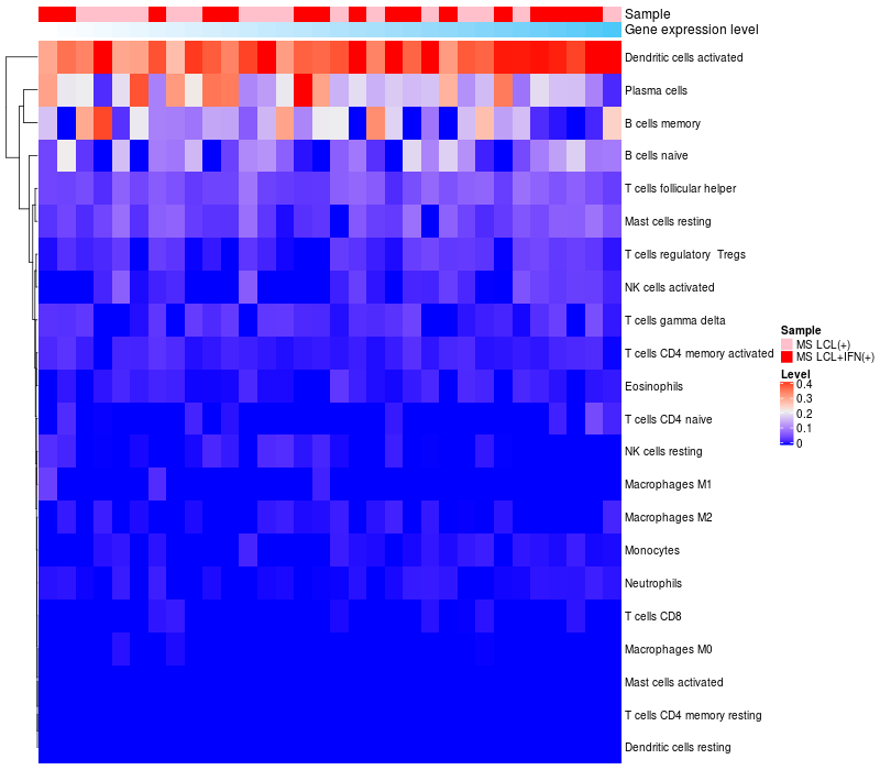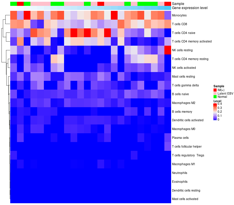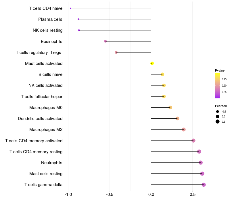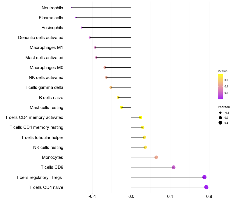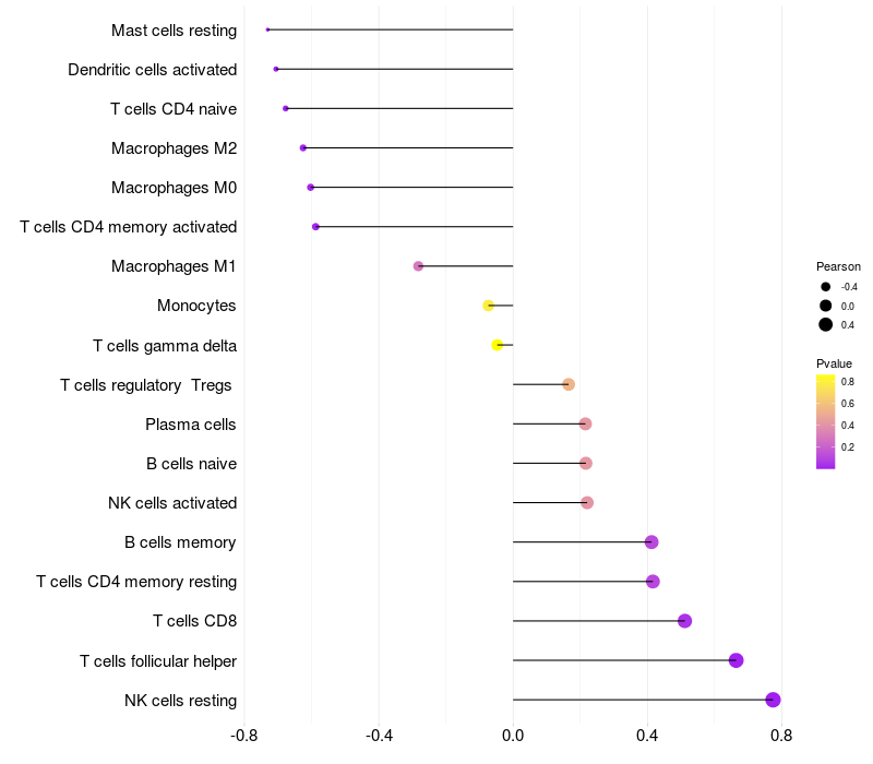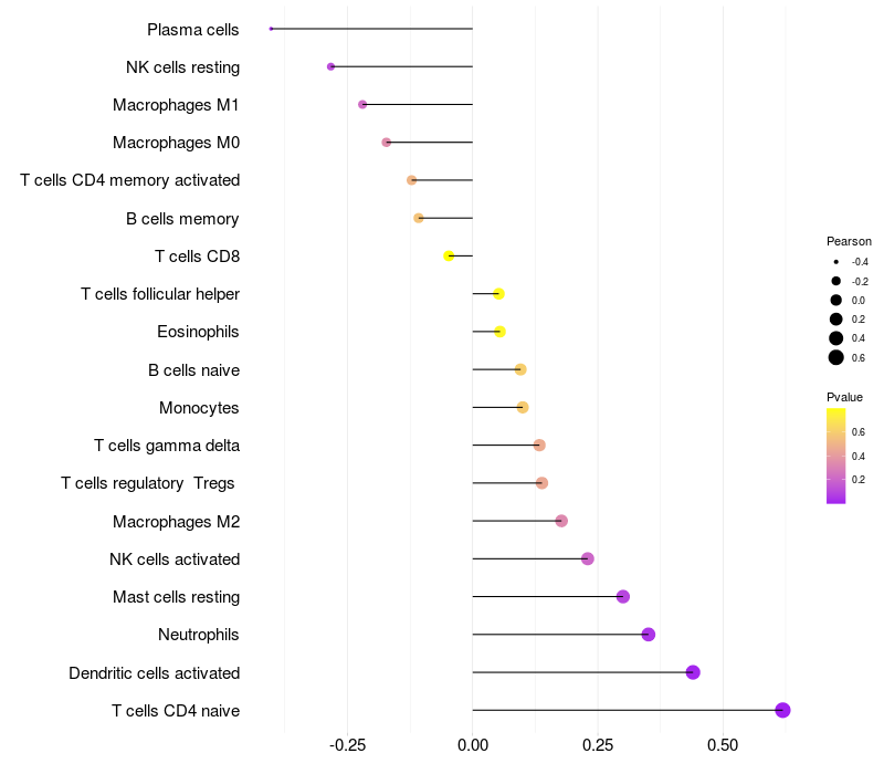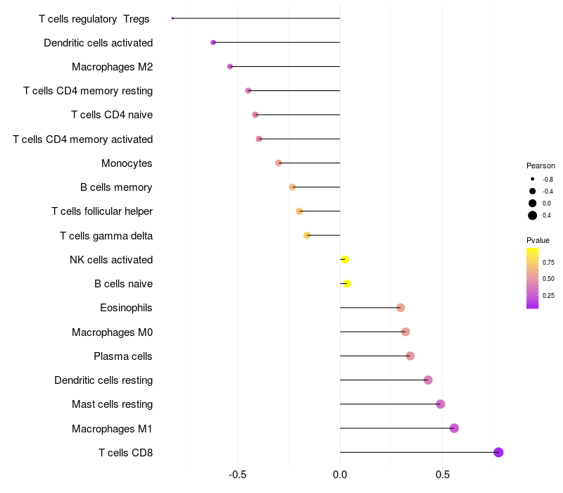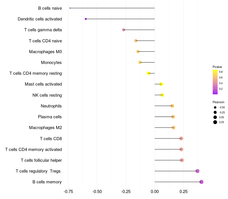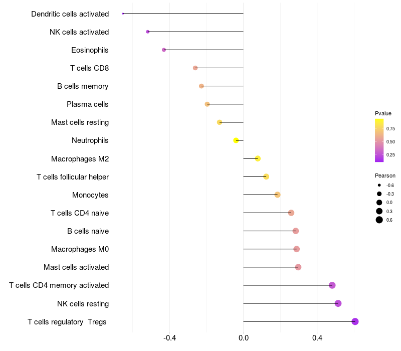 Lollipop of INPP4B expression and immune infiltrating cell level correlation result in EBV+ samples
