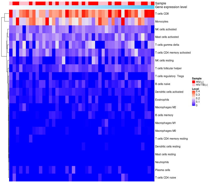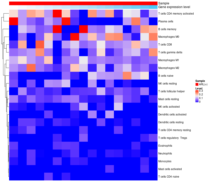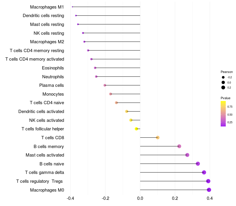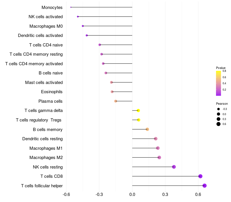Relationship between gene expression and immune infiltrating cell level