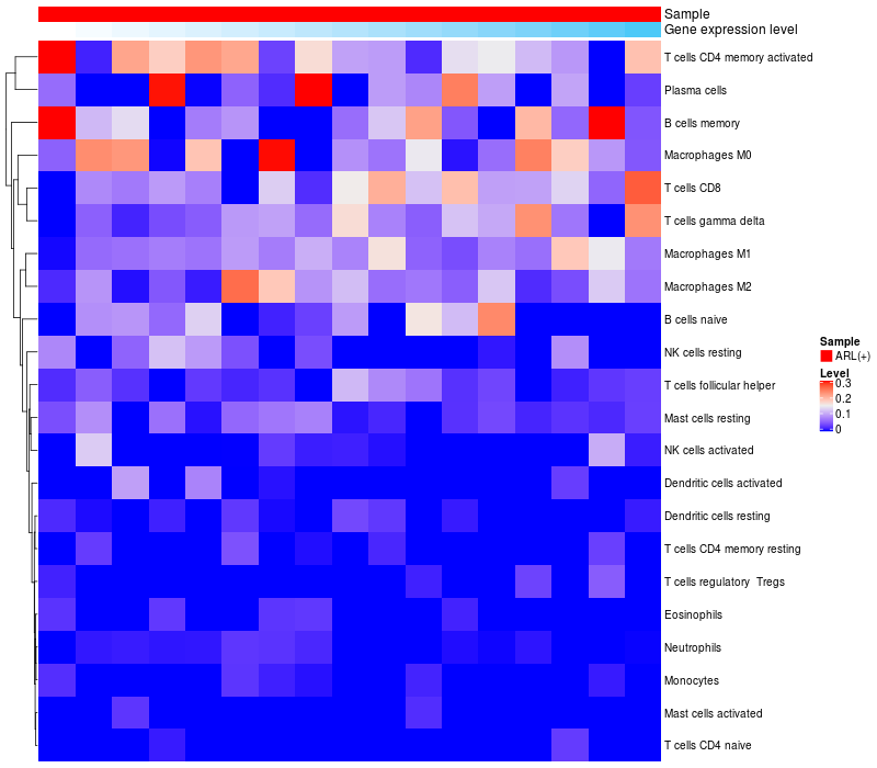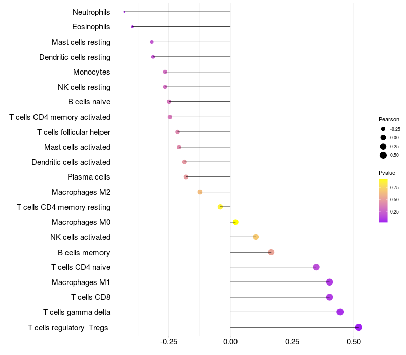 Relationship between gene expression and immune infiltrating cell level