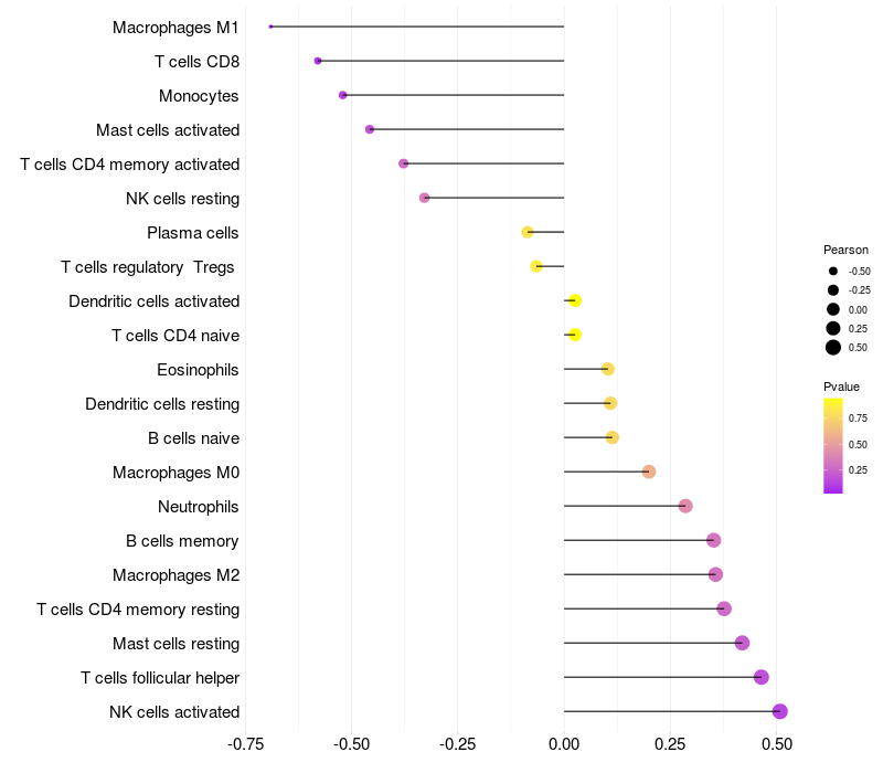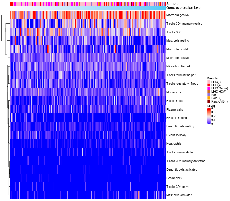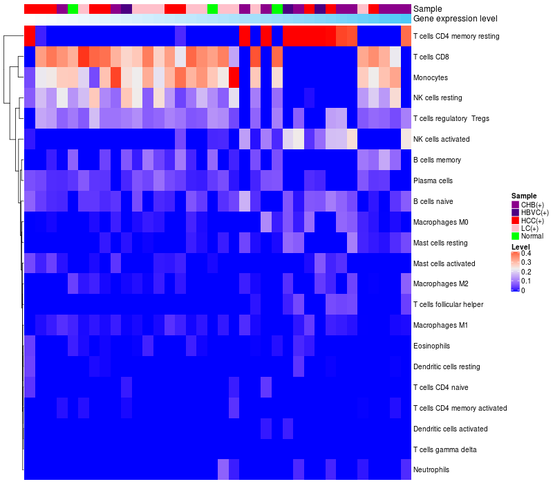 Relationship between gene expression and immune infiltrating cell level