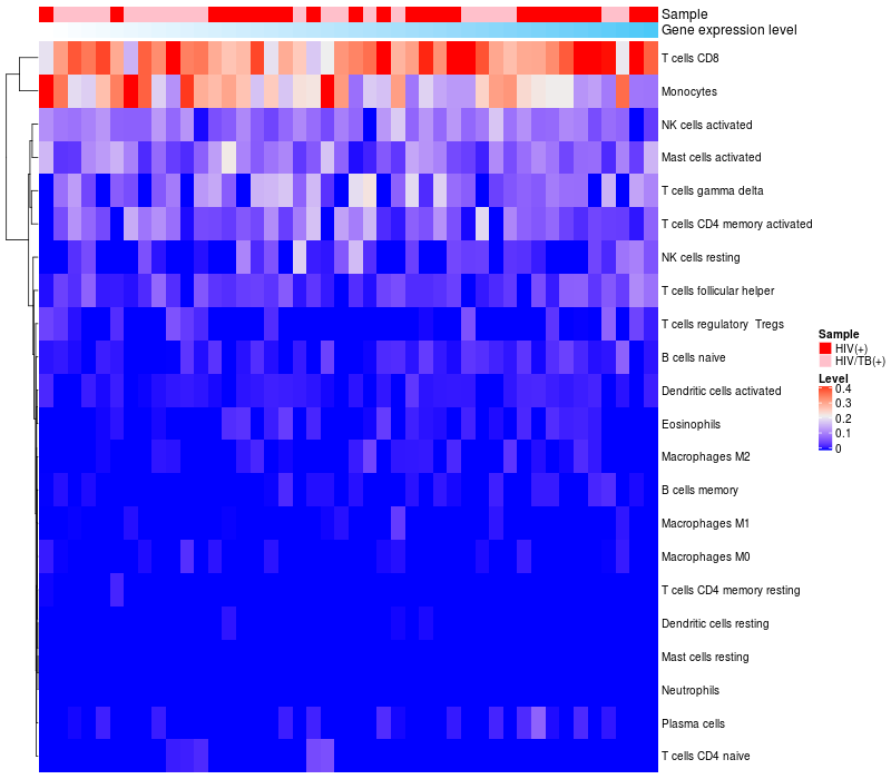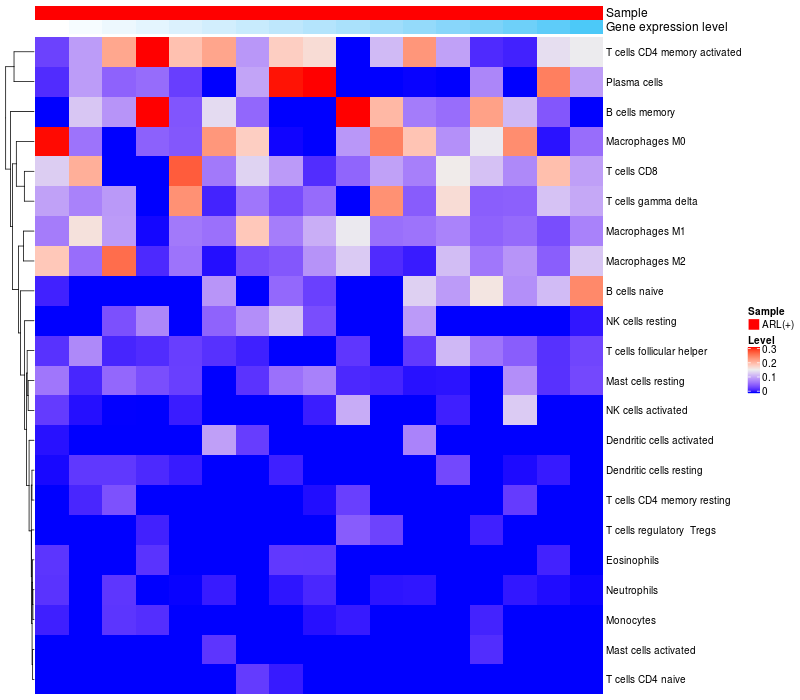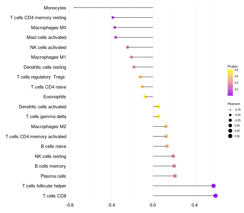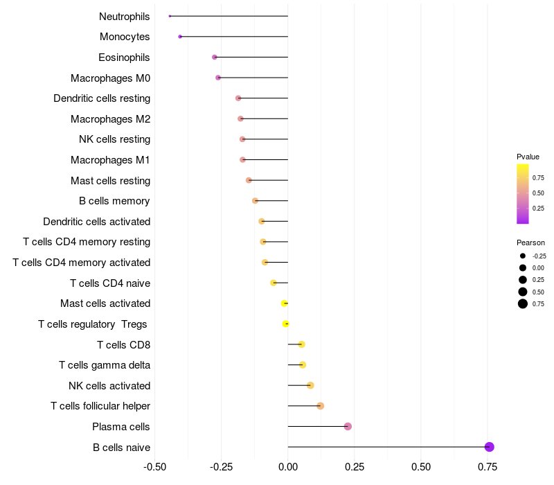 Relationship between gene expression and immune infiltrating cell level