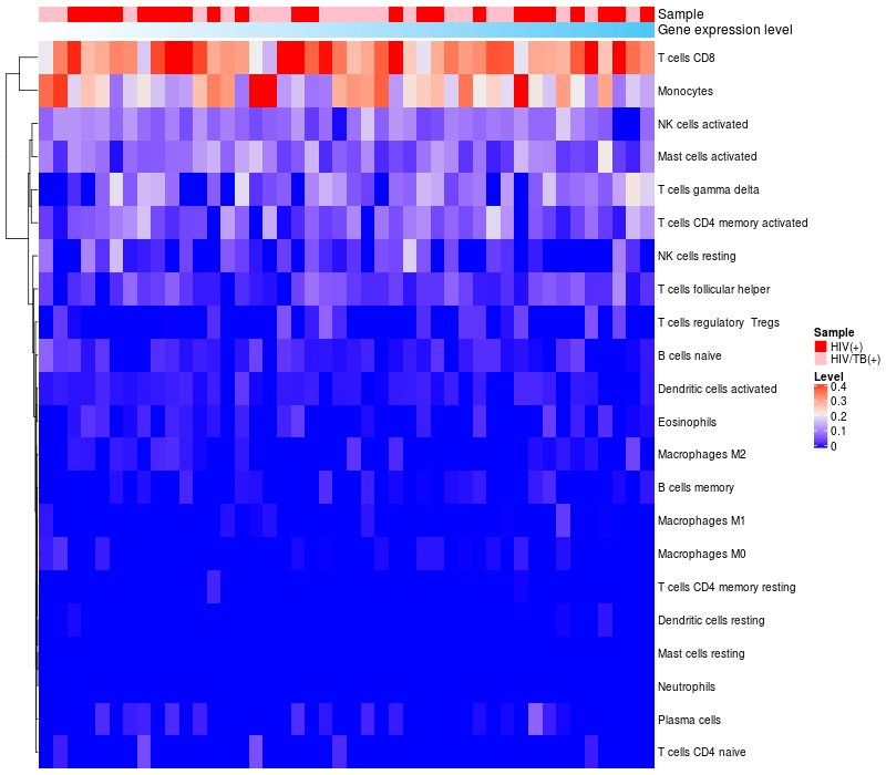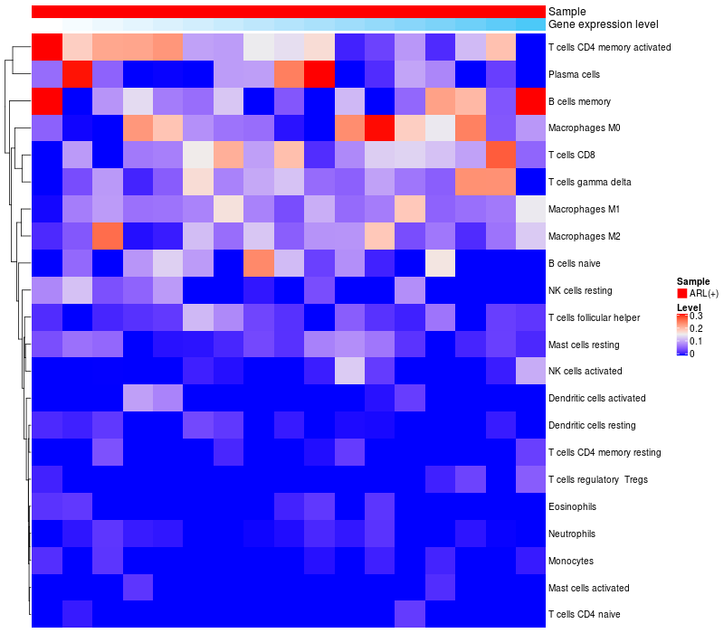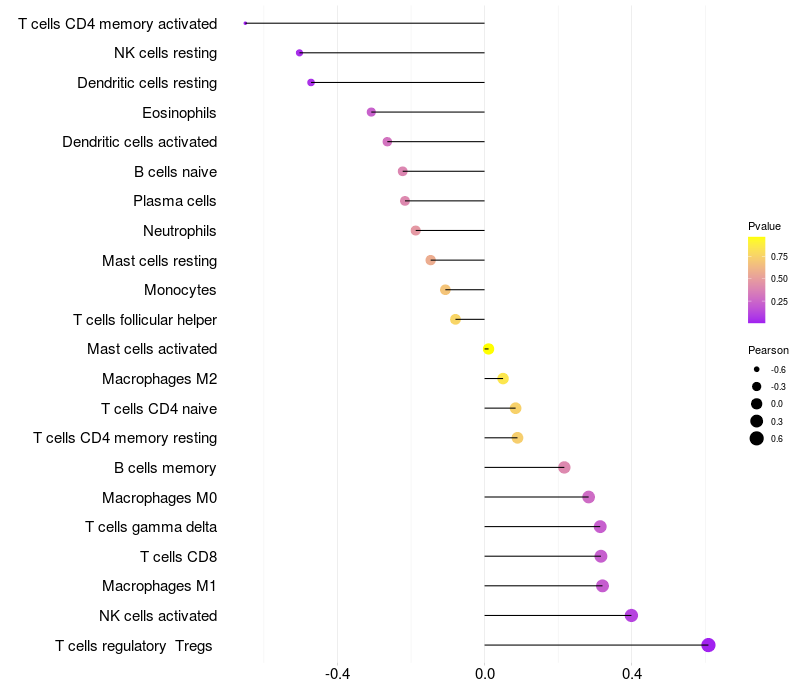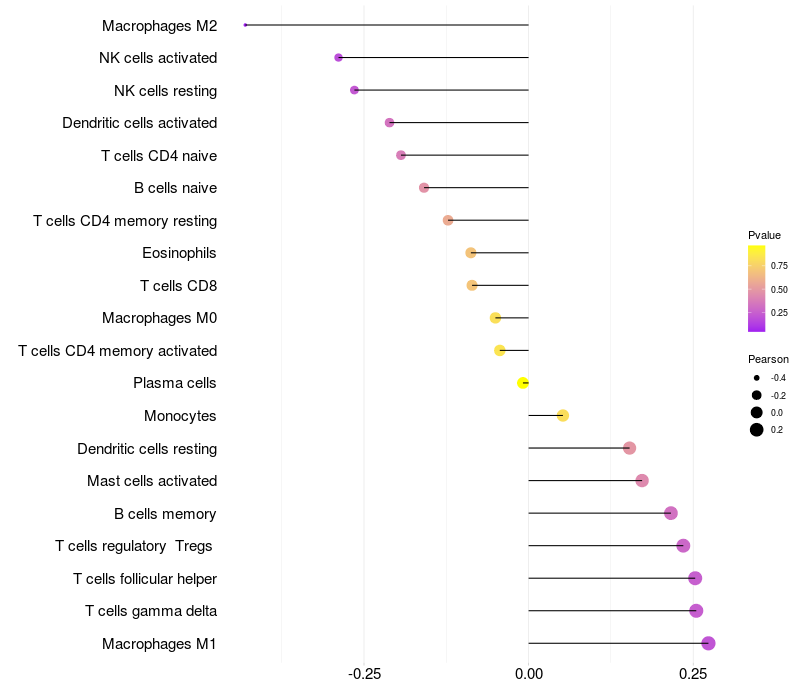 Relationship between gene expression and immune infiltrating cell level