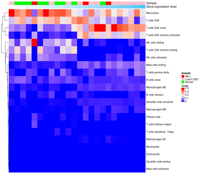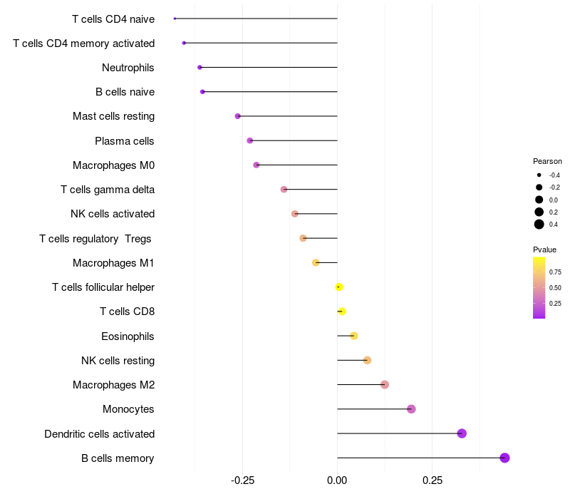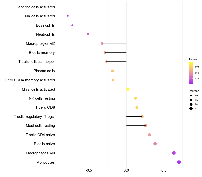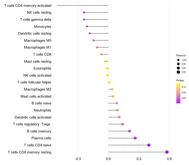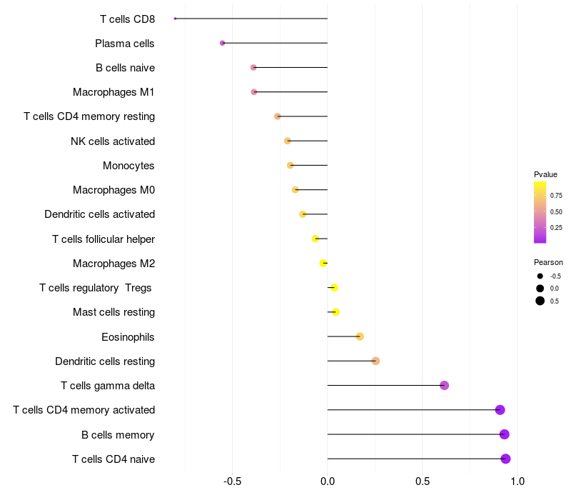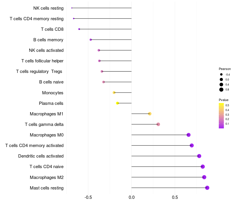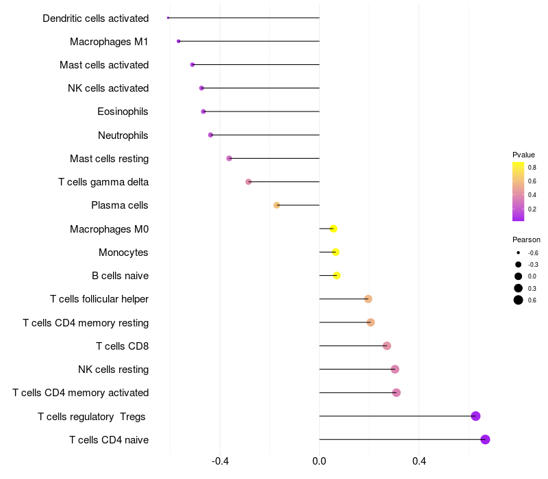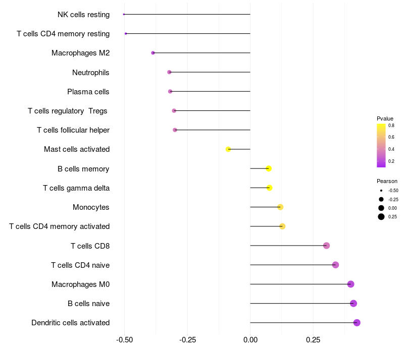Lollipop of IQCK expression and immune infiltrating cell level correlation result in EBV+ samples