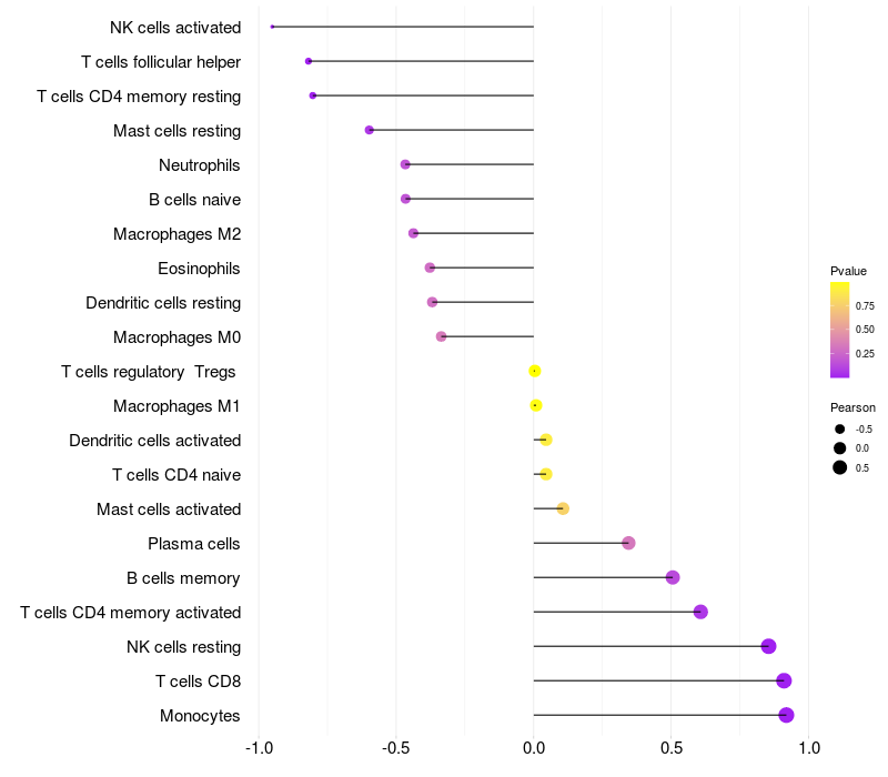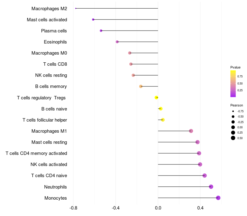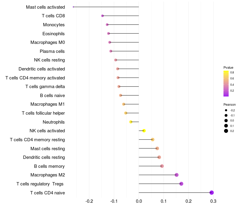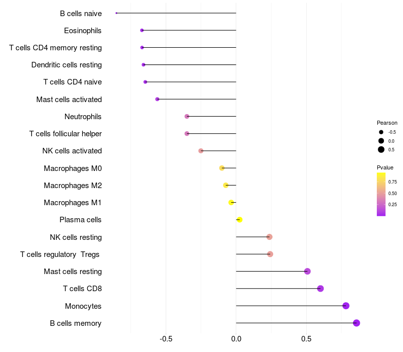 Lollipop of IQSEC1 expression and immune infiltrating cell level correlation result in HBV+ Liver cirrhosis samples
