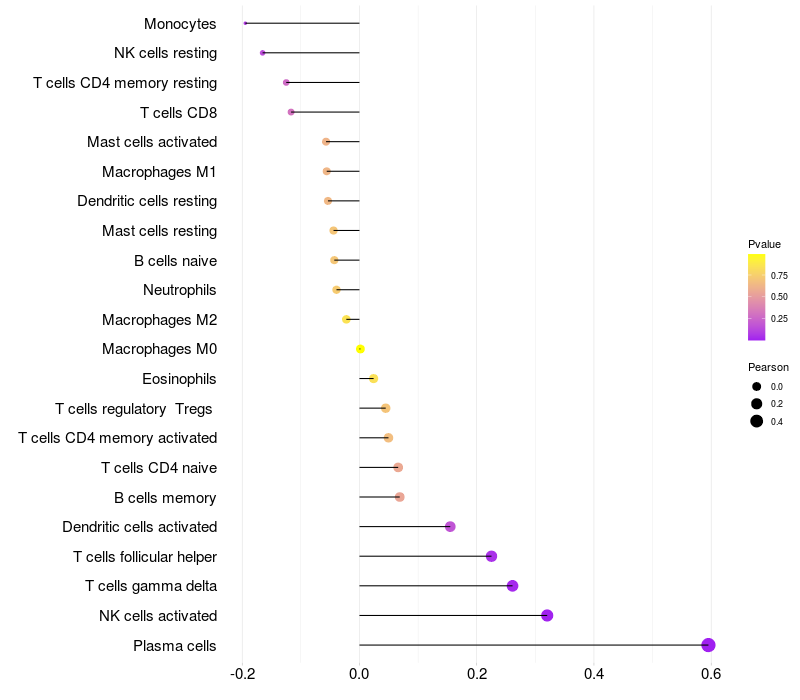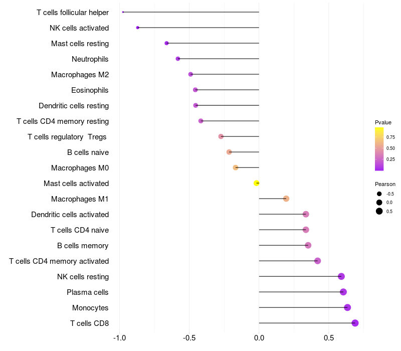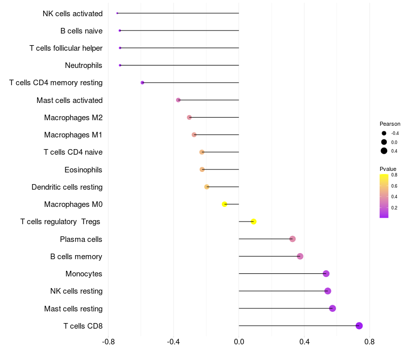 Lollipop of IQSEC2 expression and immune infiltrating cell level correlation result in HBV+ Liver cirrhosis samples