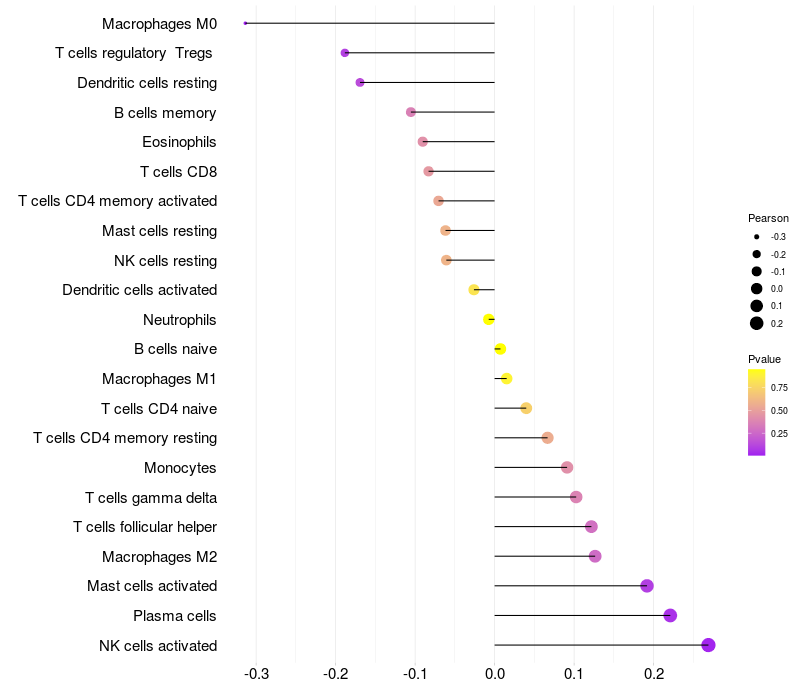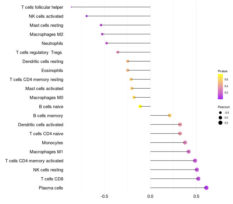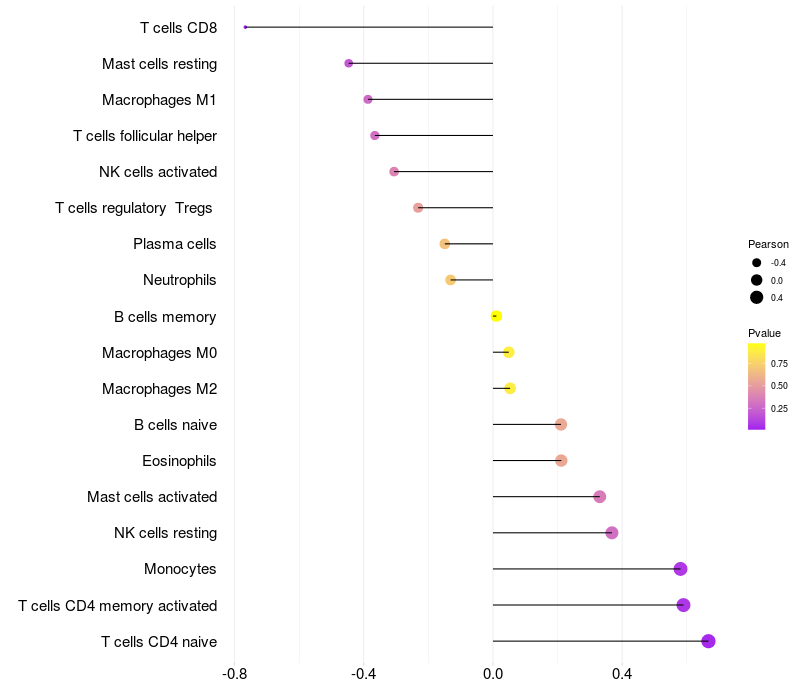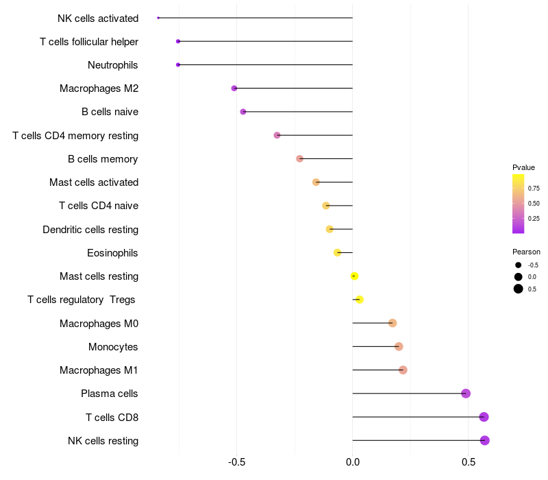 Lollipop of IQSEC3 expression and immune infiltrating cell level correlation result in HBV+ Liver cirrhosis samples