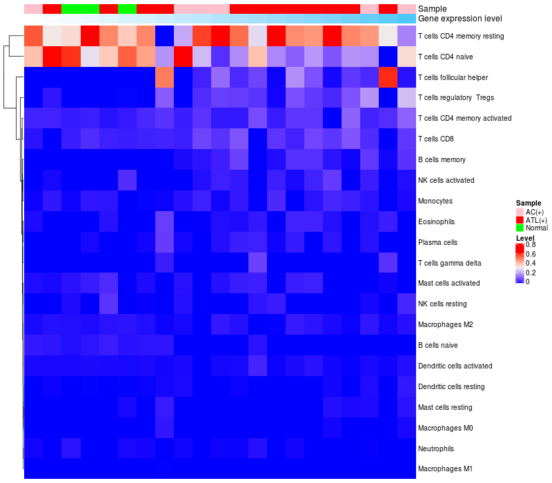 Normal (3), Asymptomatic carriers (HTLV1+)(6), Adult T-cell Leukemia-lymphoma (HTLV1+)(12) |