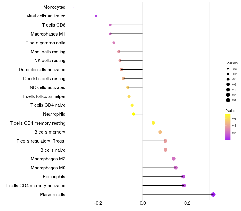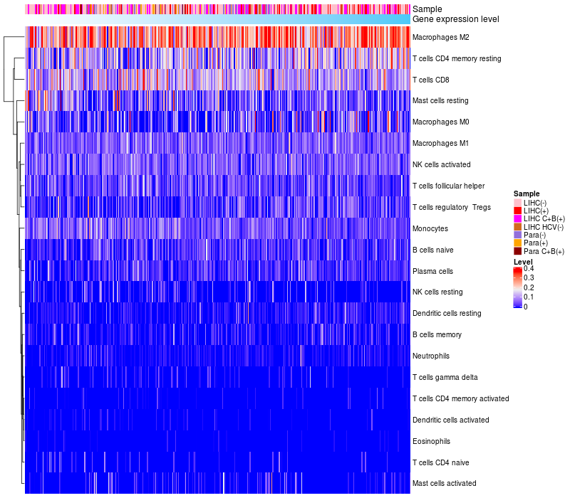 Relationship between gene expression and immune infiltrating cell level