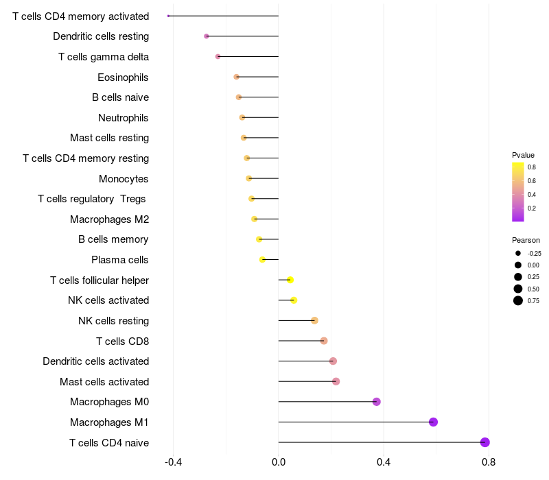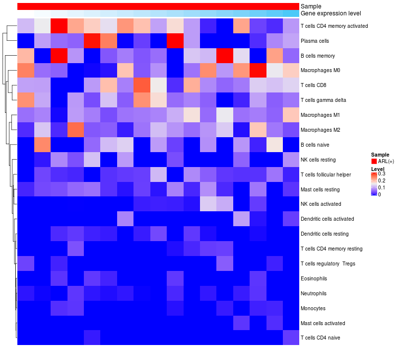 Relationship between gene expression and immune infiltrating cell level