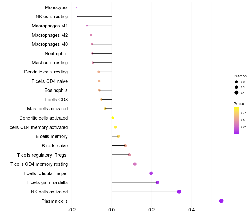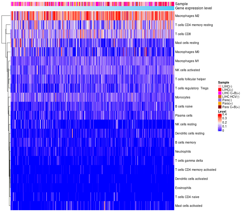 Relationship between gene expression and immune infiltrating cell level