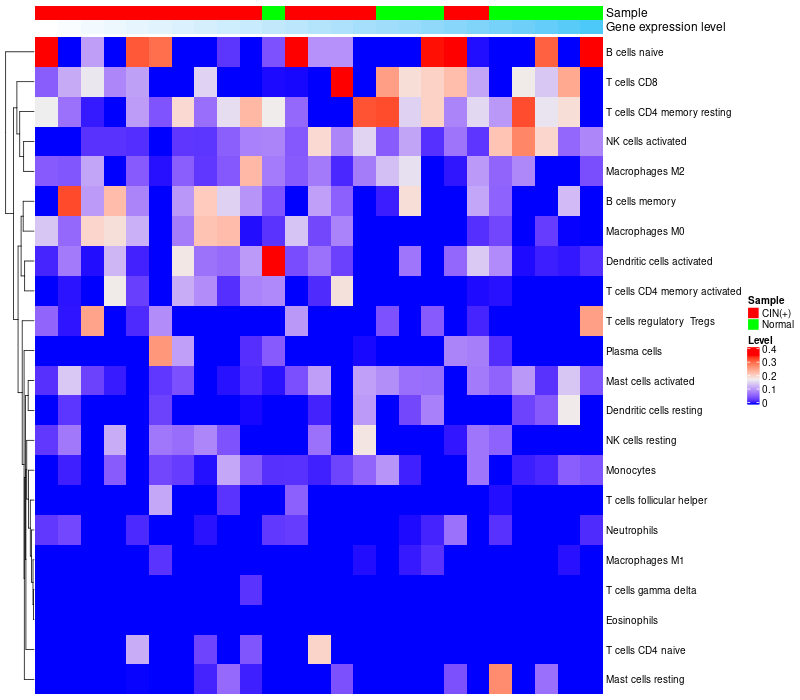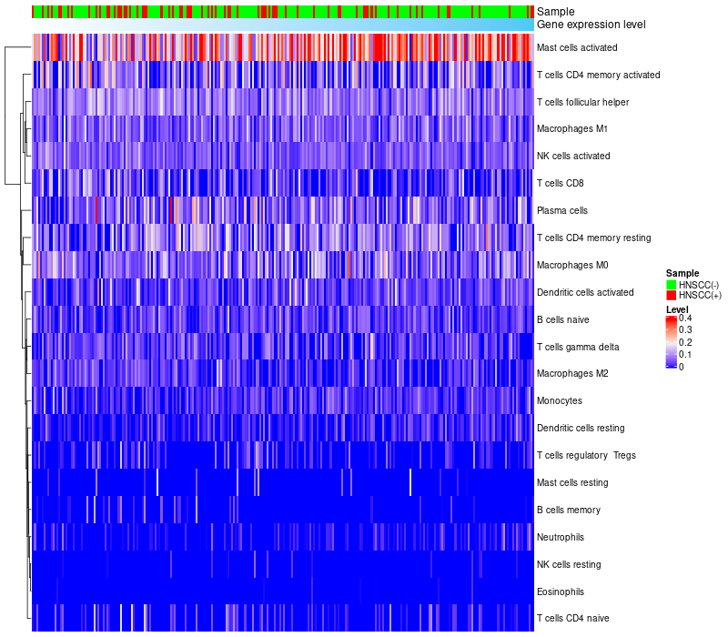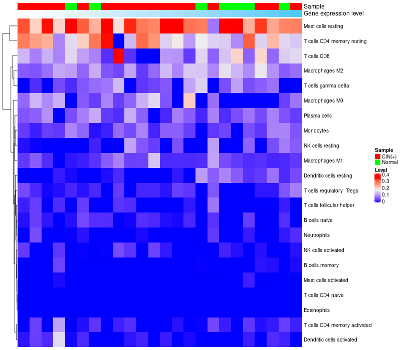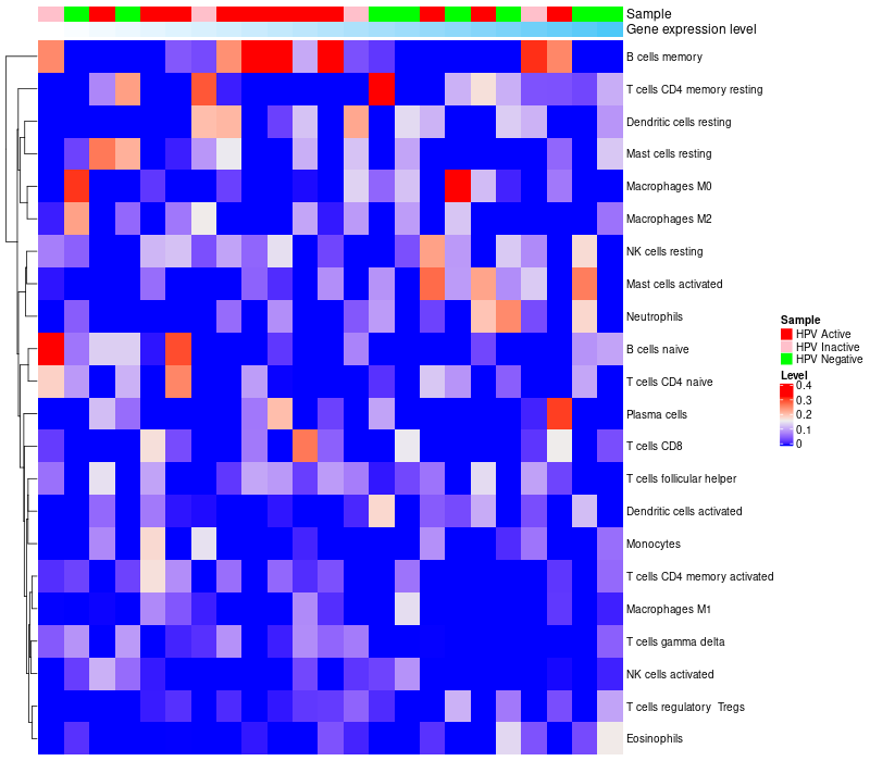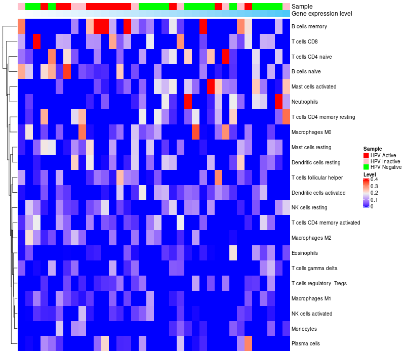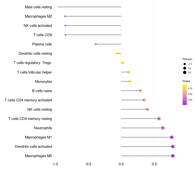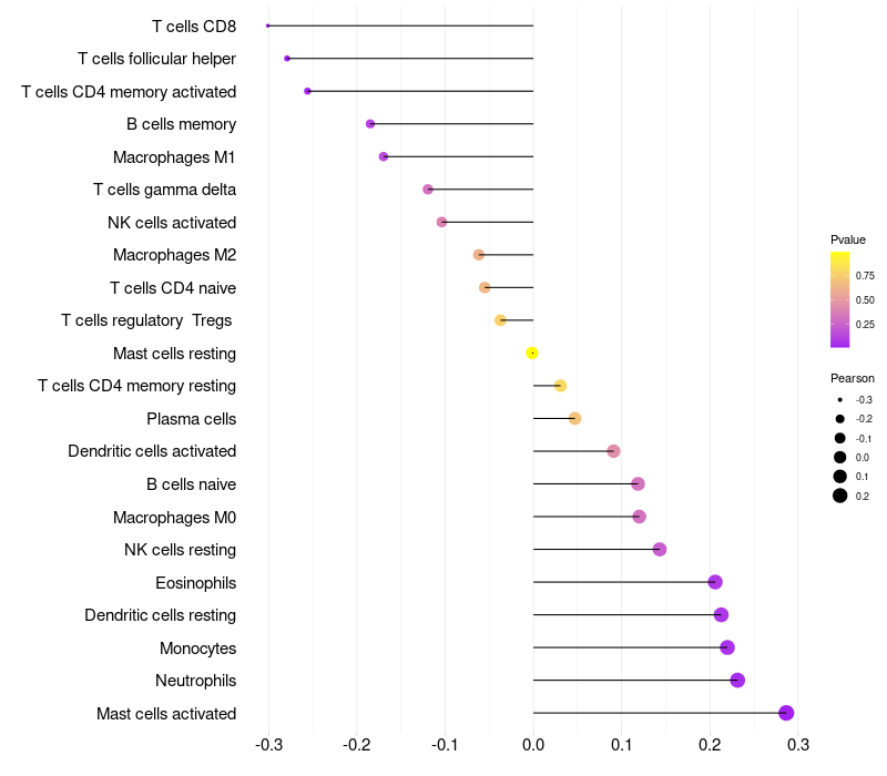 Lollipop of IVL expression and immune infiltrating cell level correlation result in HPV+ samples
