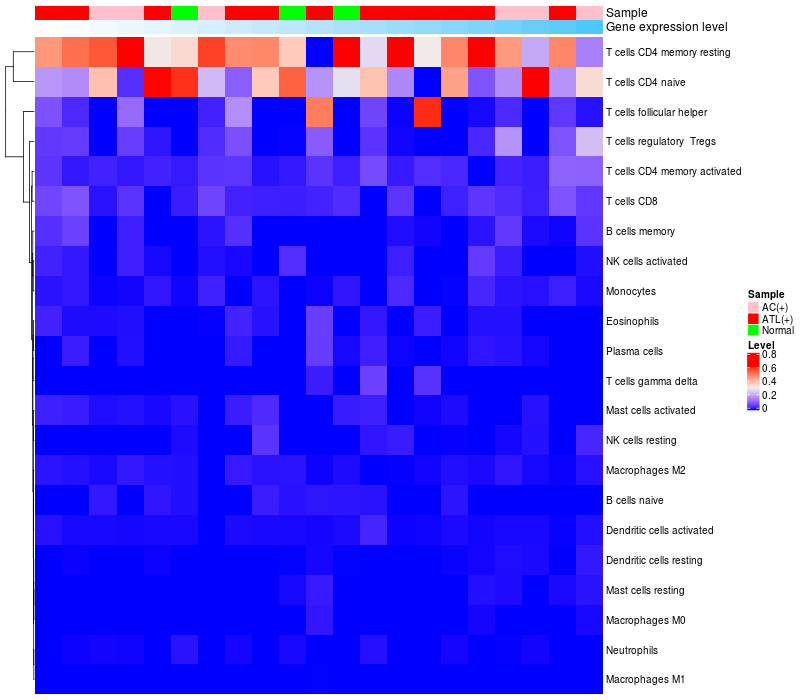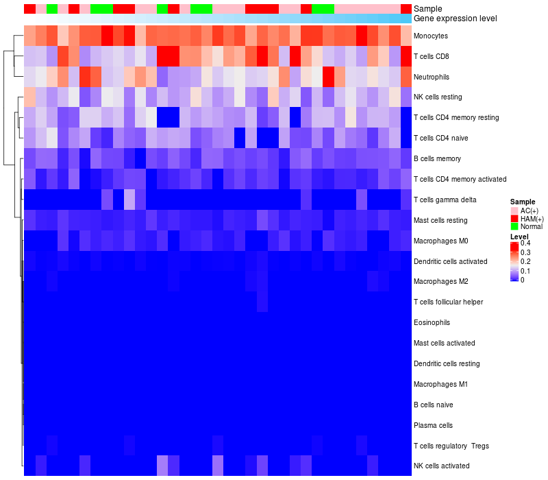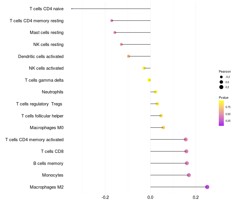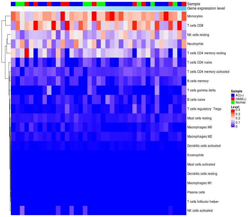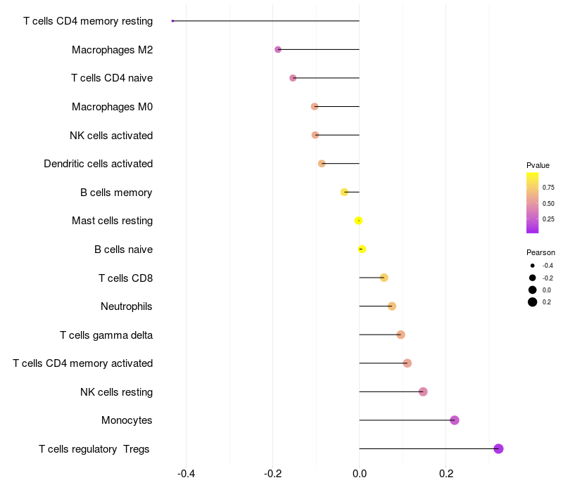 Relationship between gene expression and immune infiltrating cell level