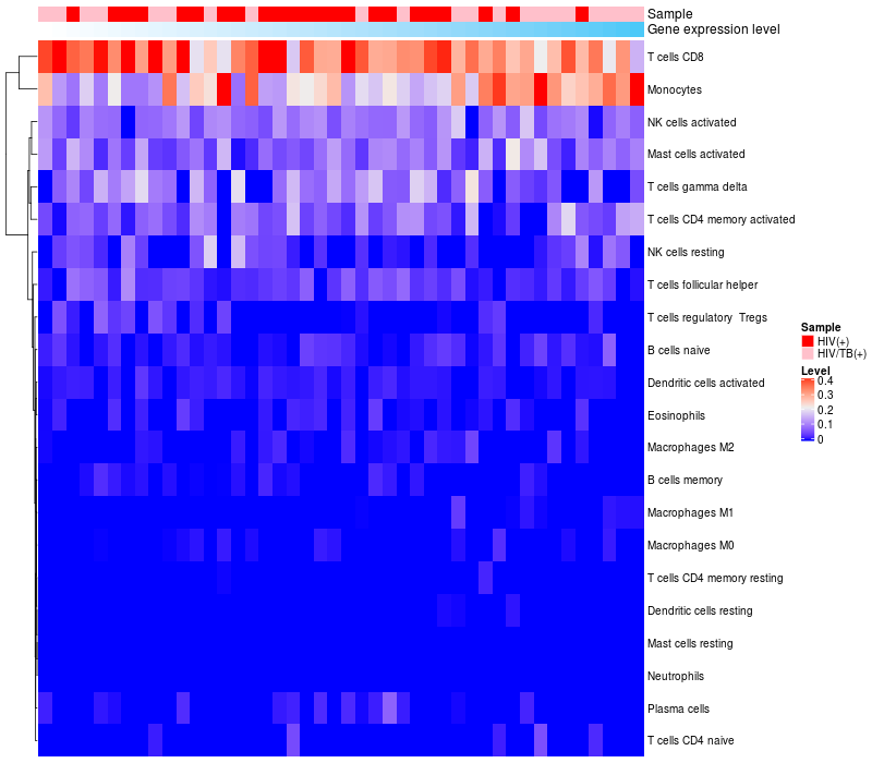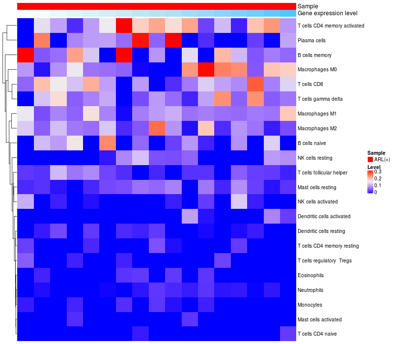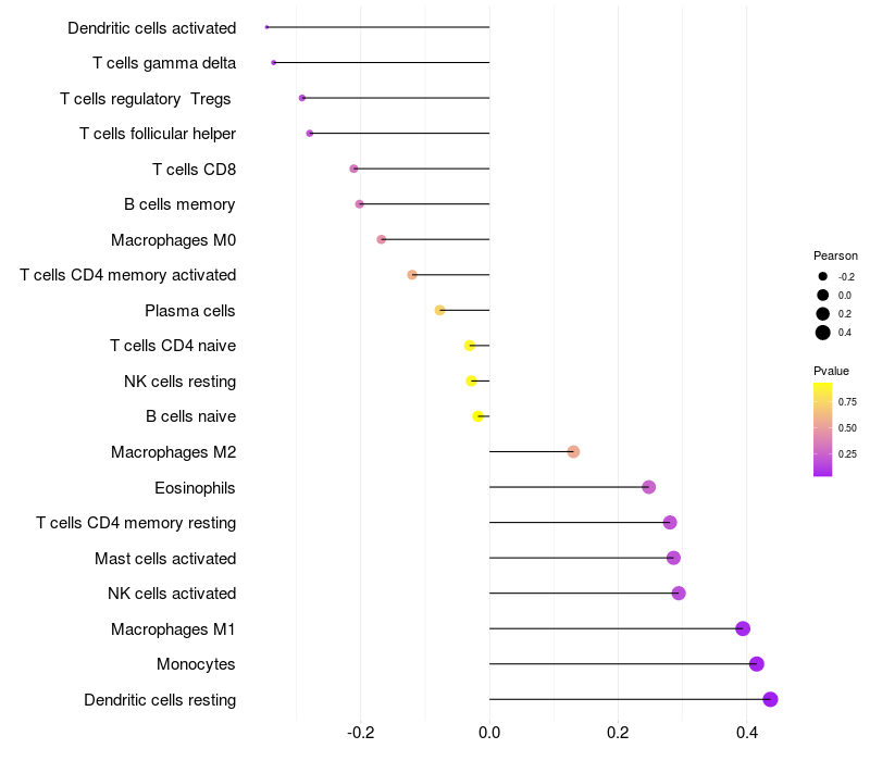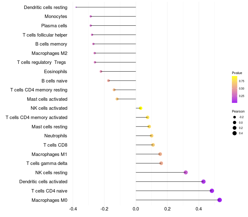 Relationship between gene expression and immune infiltrating cell level