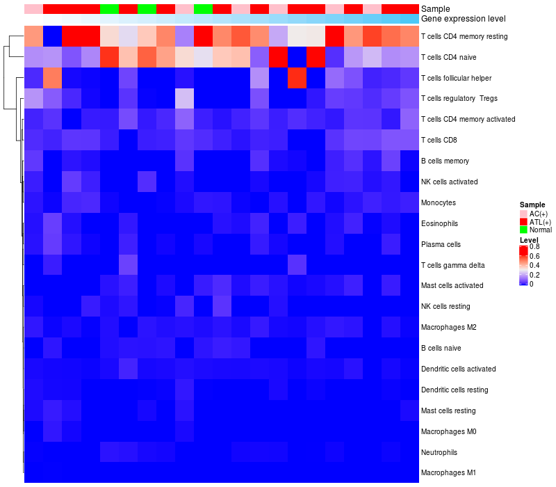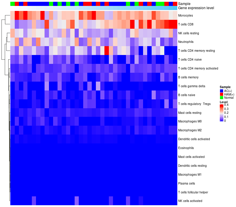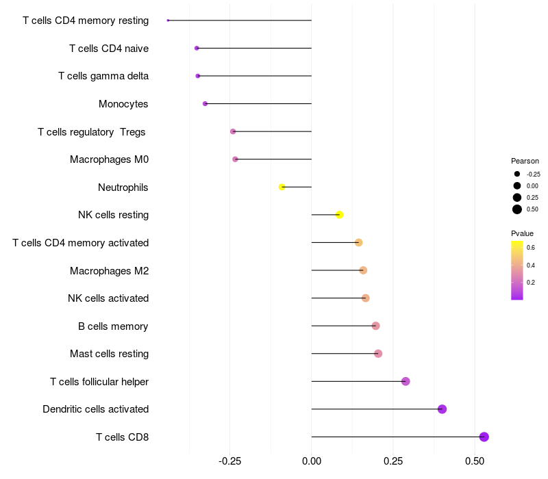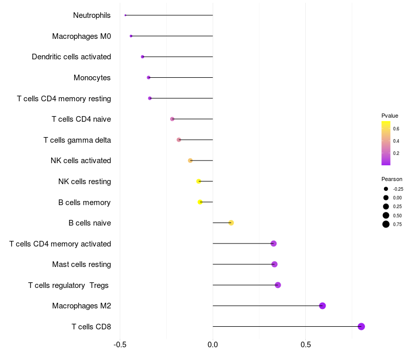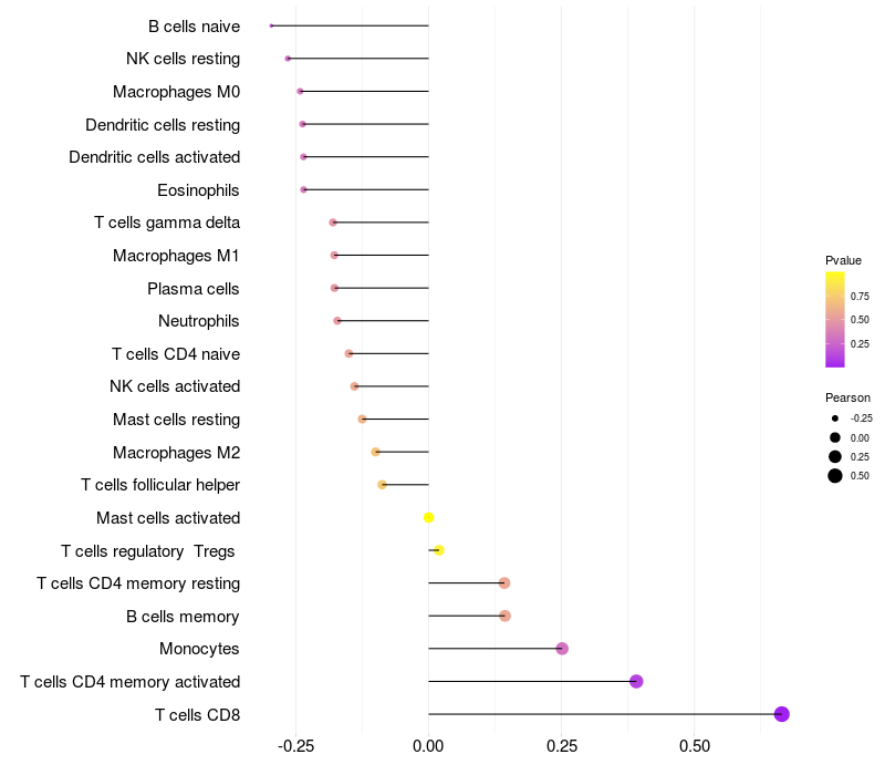 Relationship between gene expression and immune infiltrating cell level