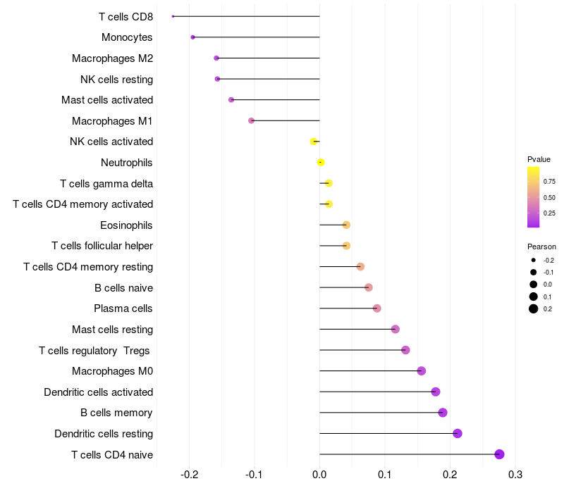 Relationship between gene expression and immune infiltrating cell level