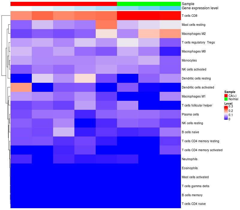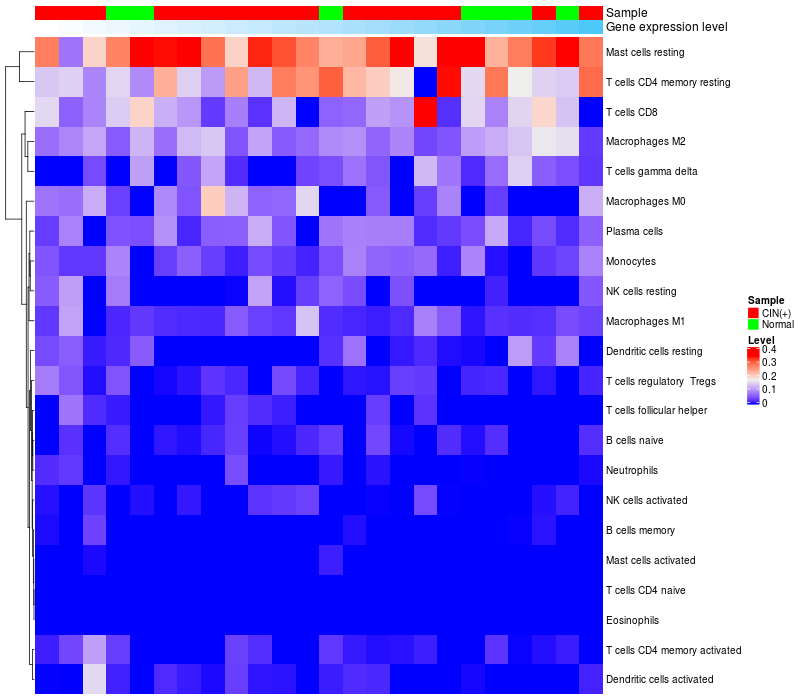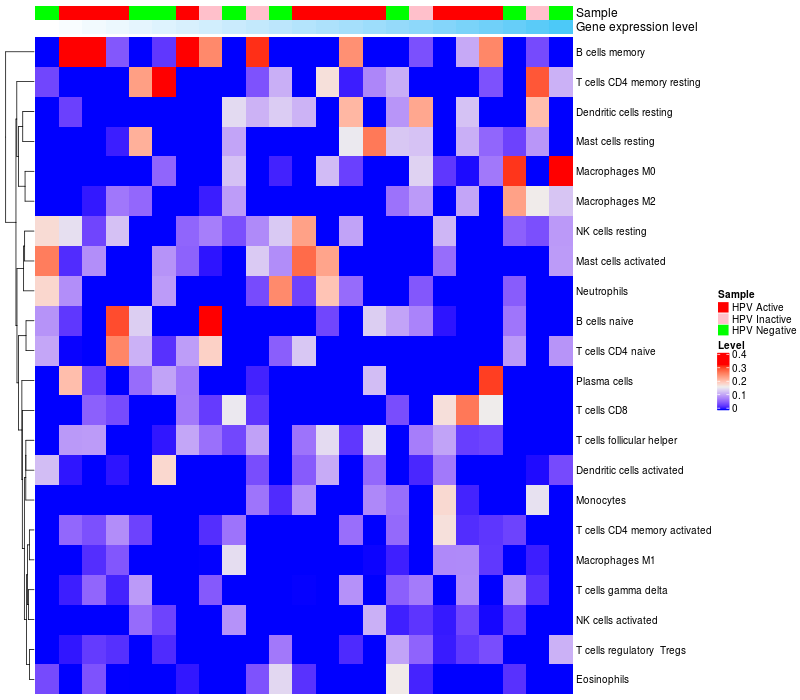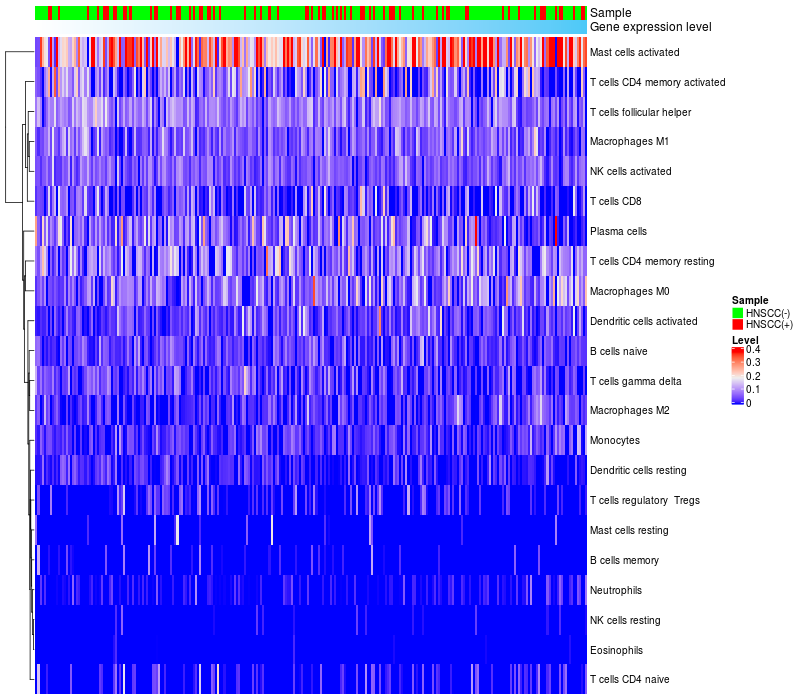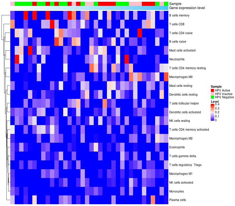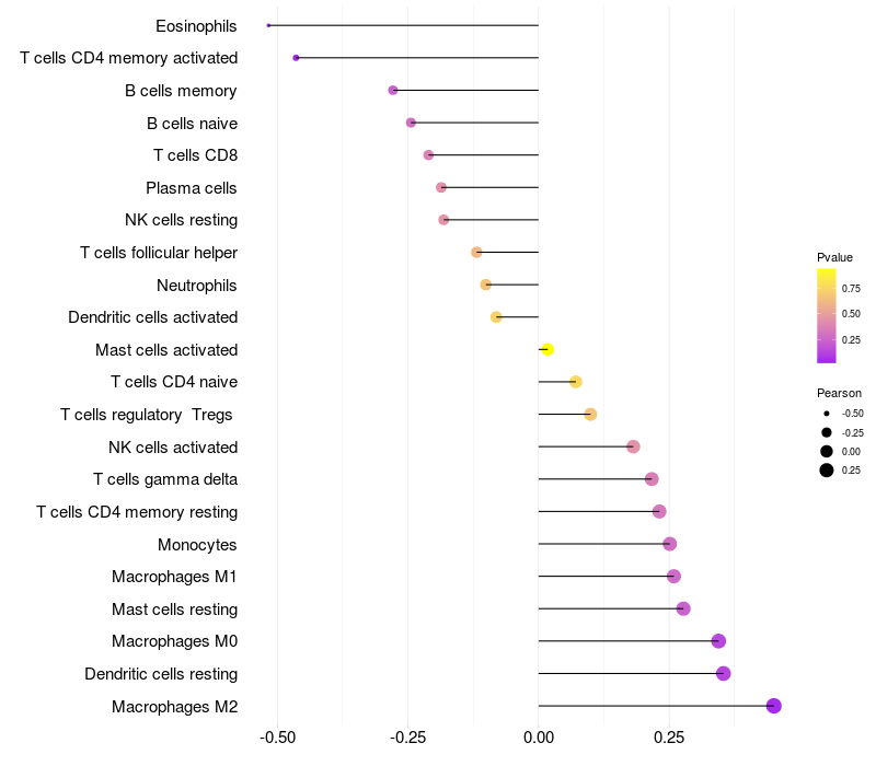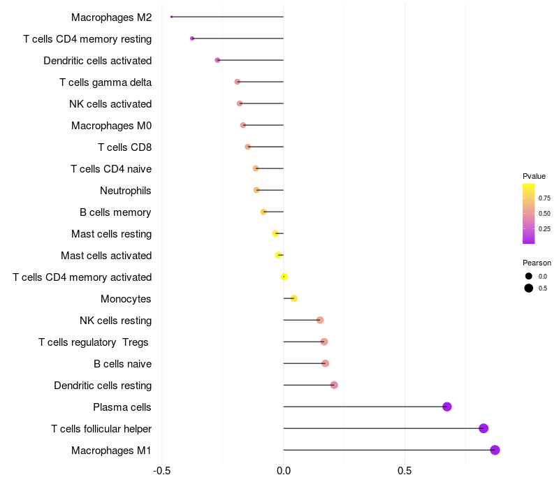 Lollipop of KANK2 expression and immune infiltrating cell level correlation result in HPV+ samples
