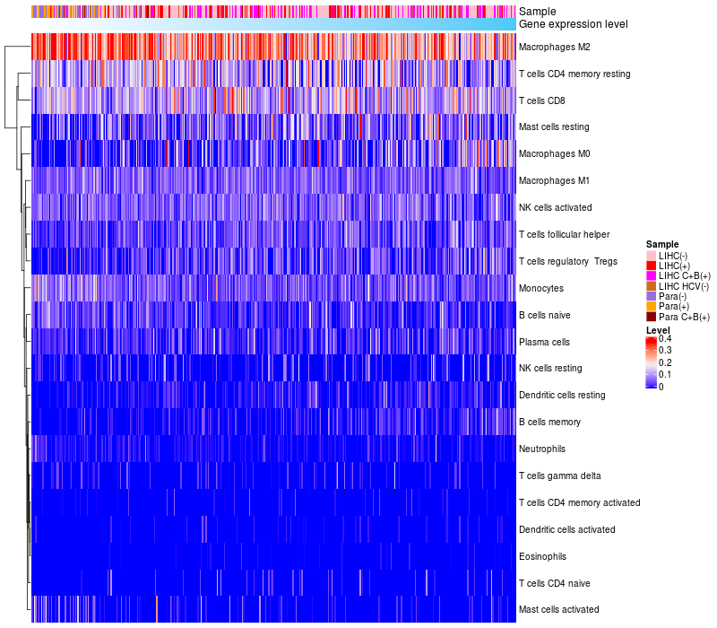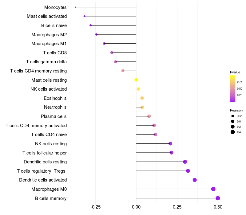 Relationship between gene expression and immune infiltrating cell level