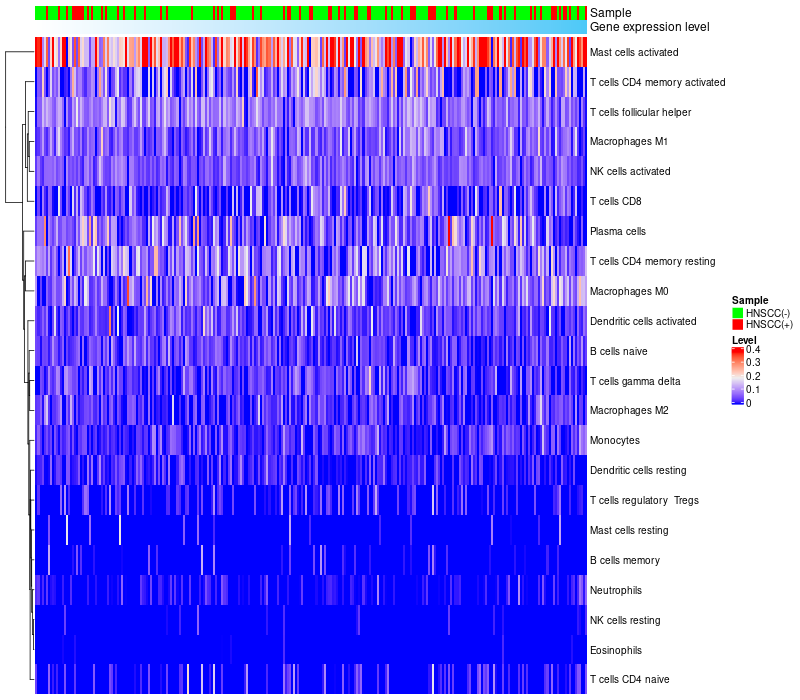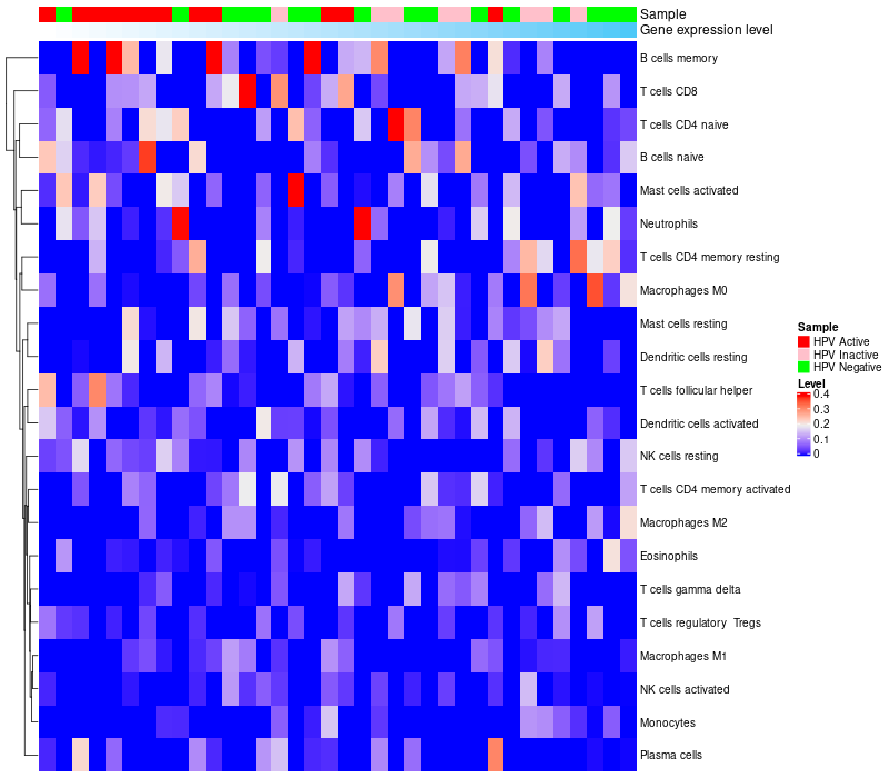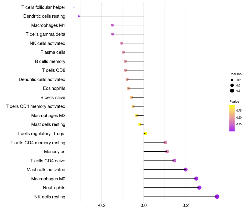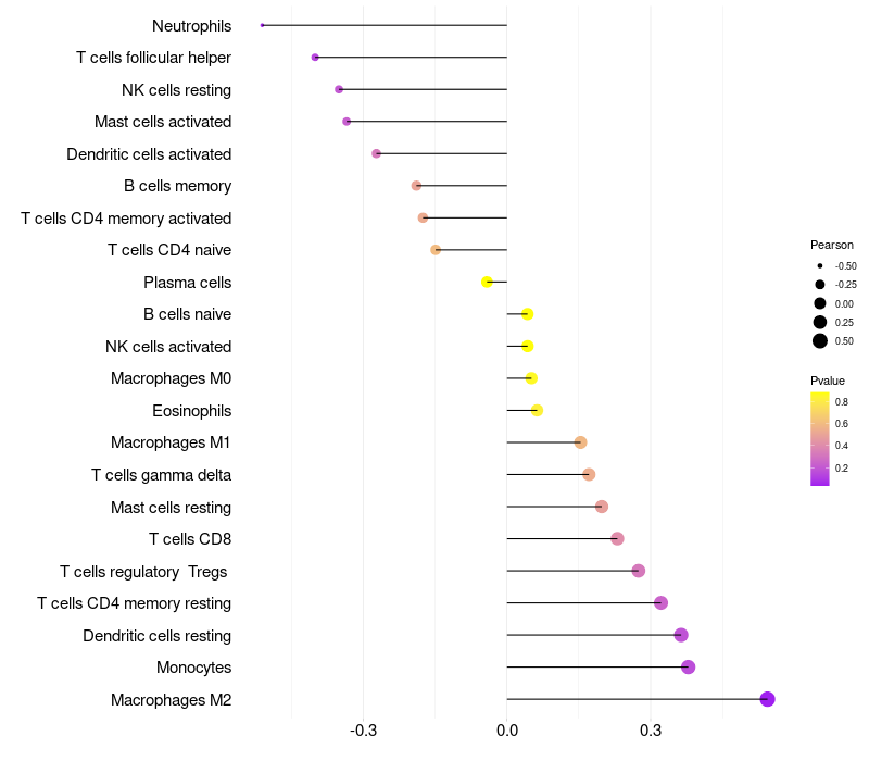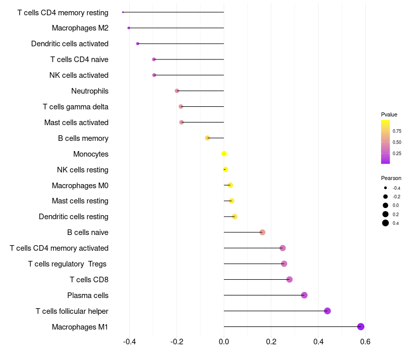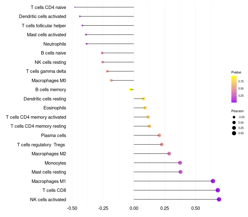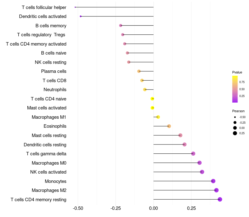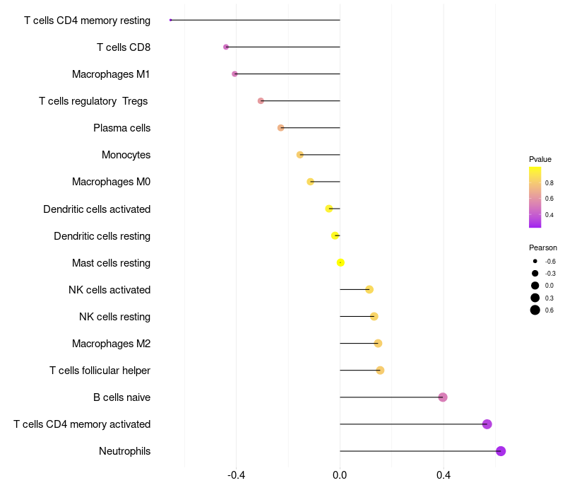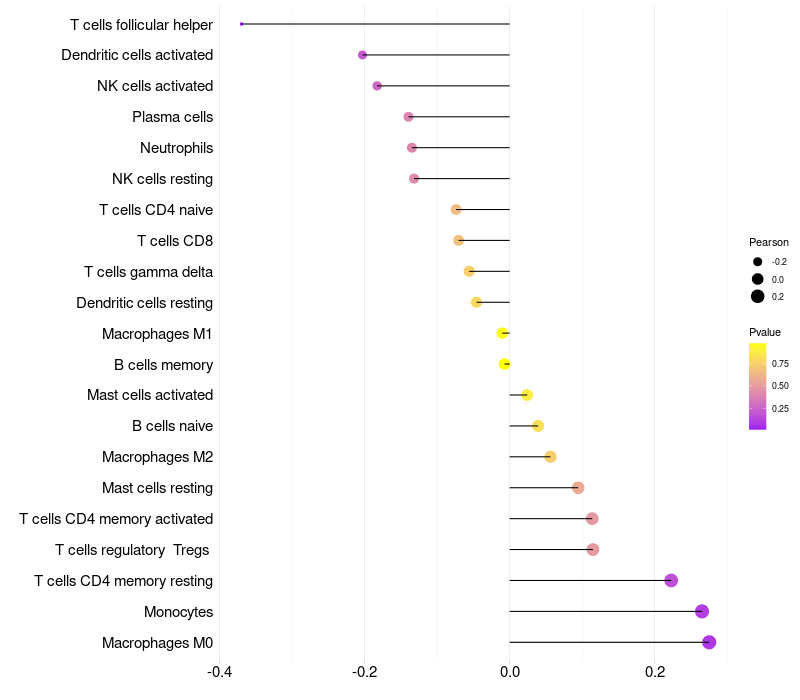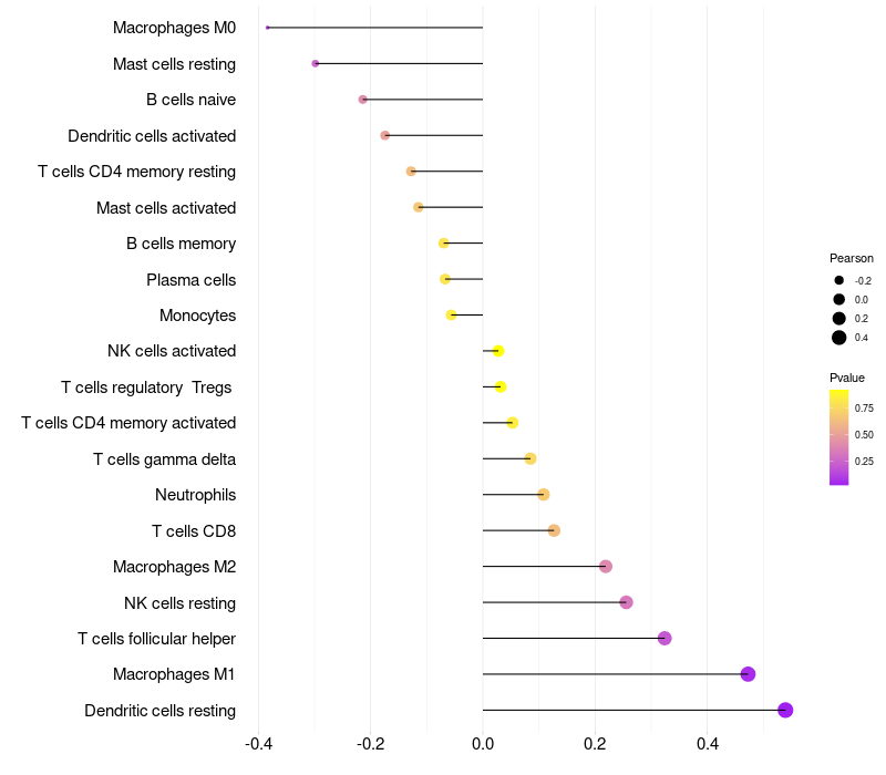 Lollipop of KCNE4 expression and immune infiltrating cell level correlation result in HPV+ samples